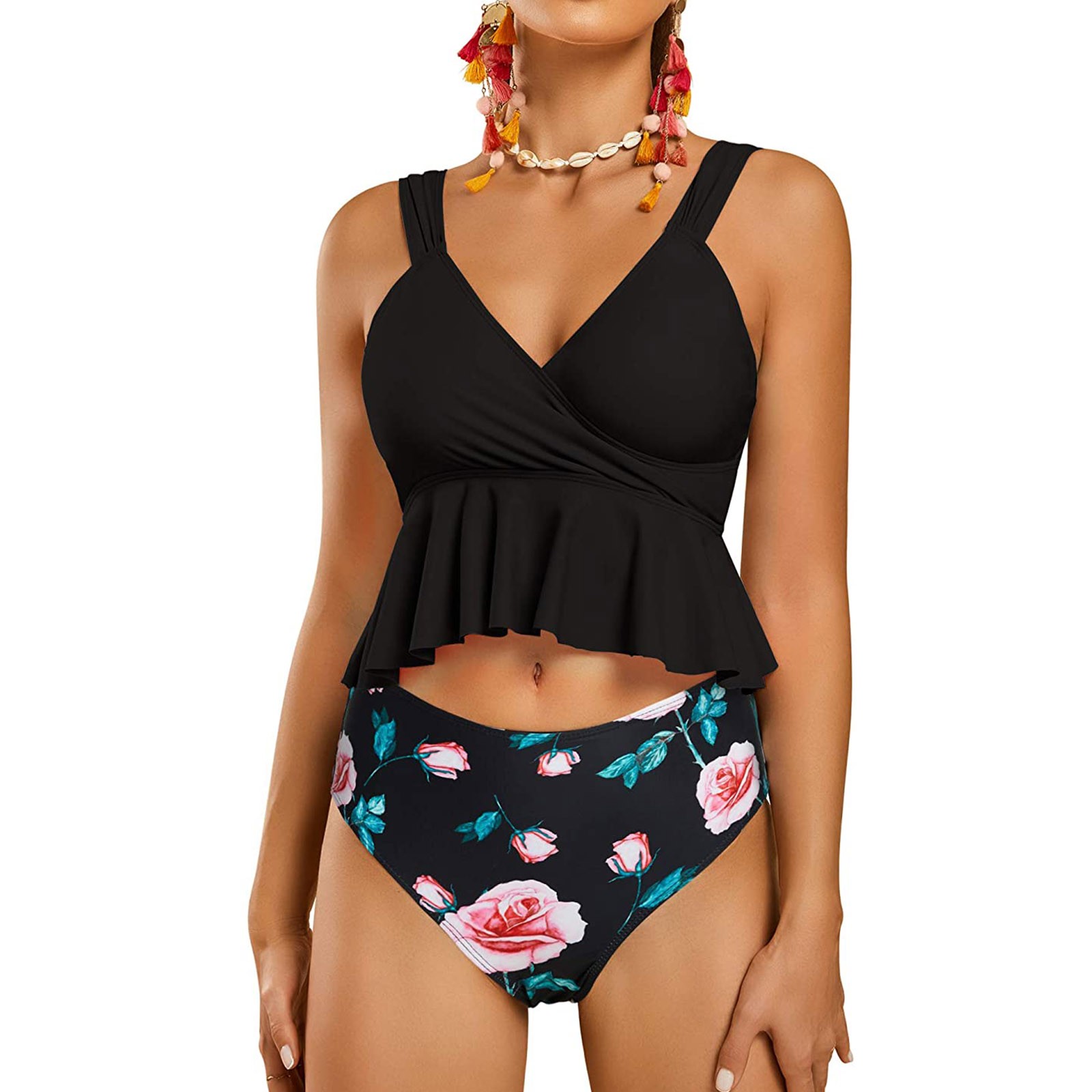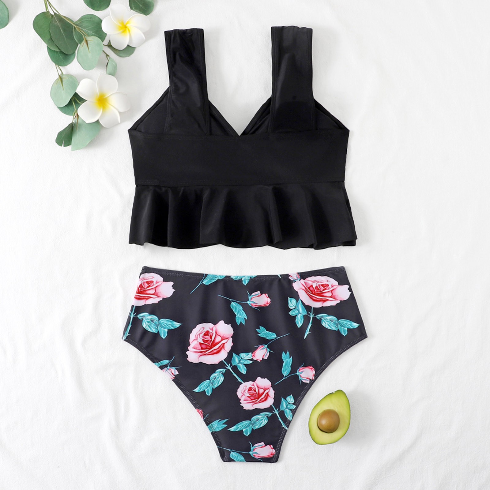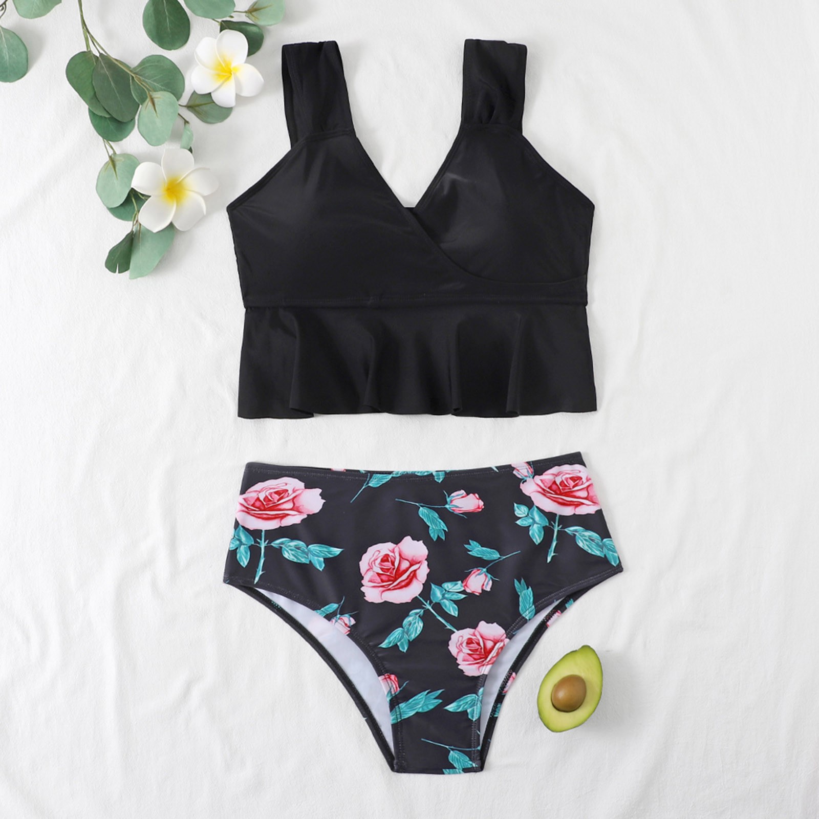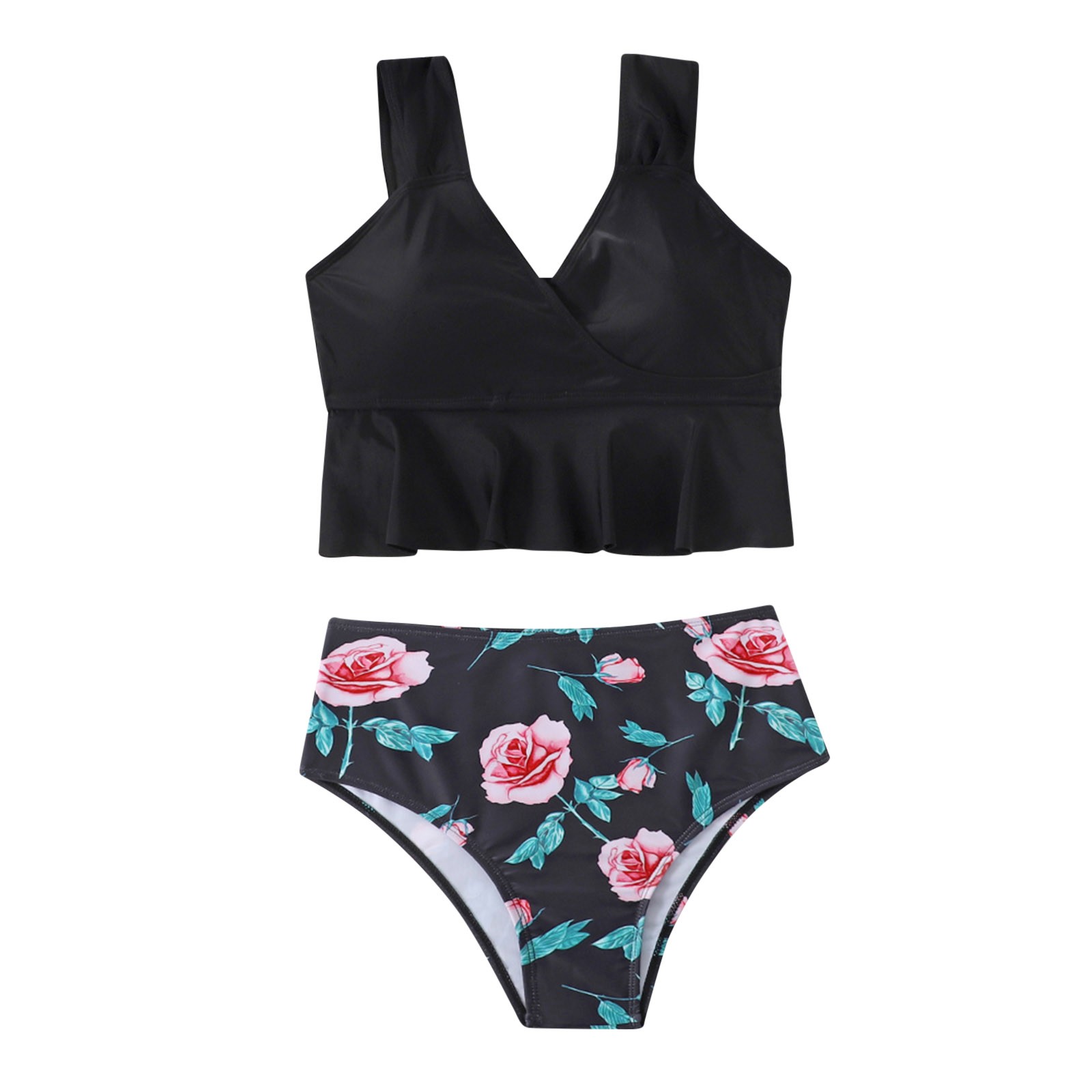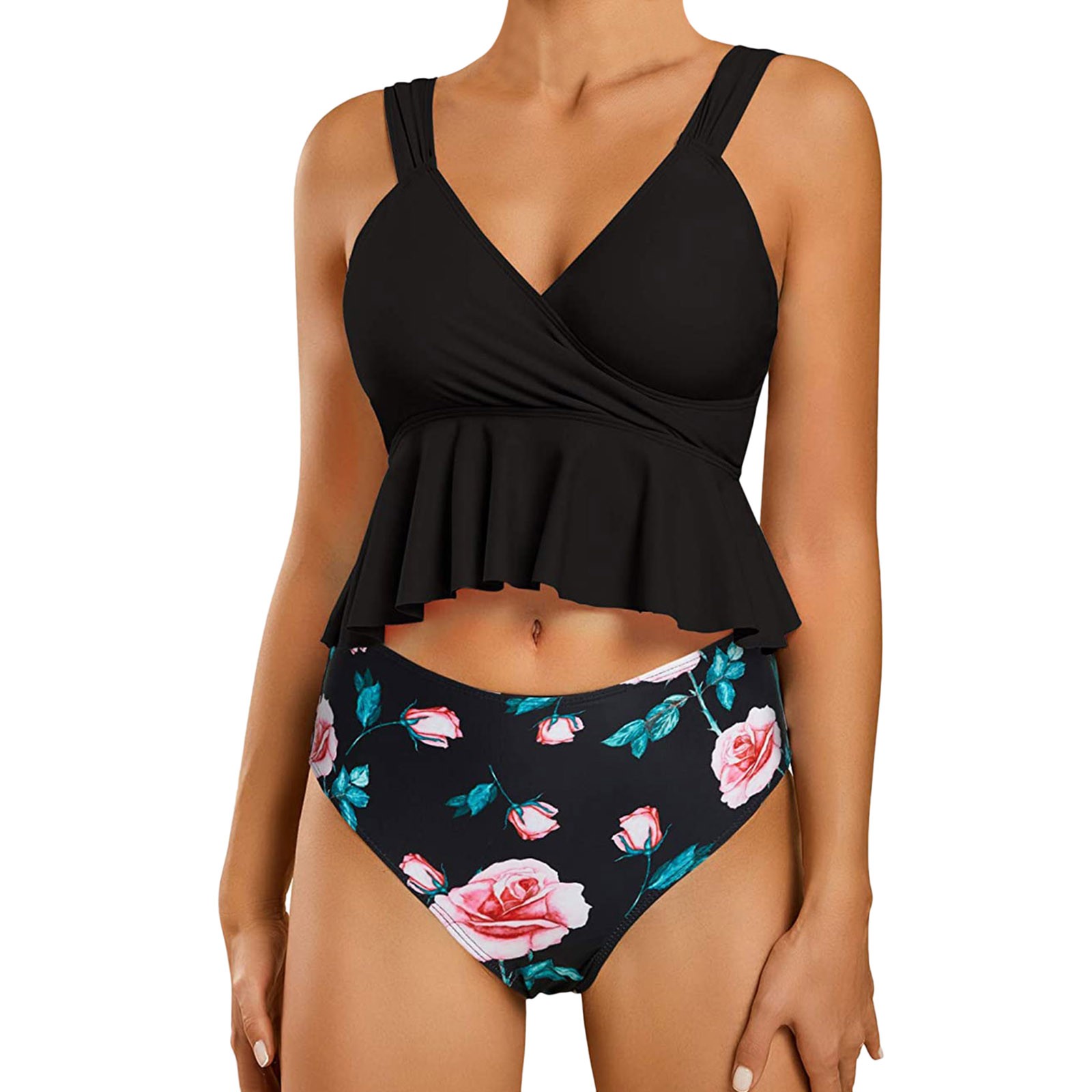 【Низ с высокой талией】Классический охват, контроль живота с высокой талией и рюшами снизу, чтобы покрыть живот, лестно цветочный принт;