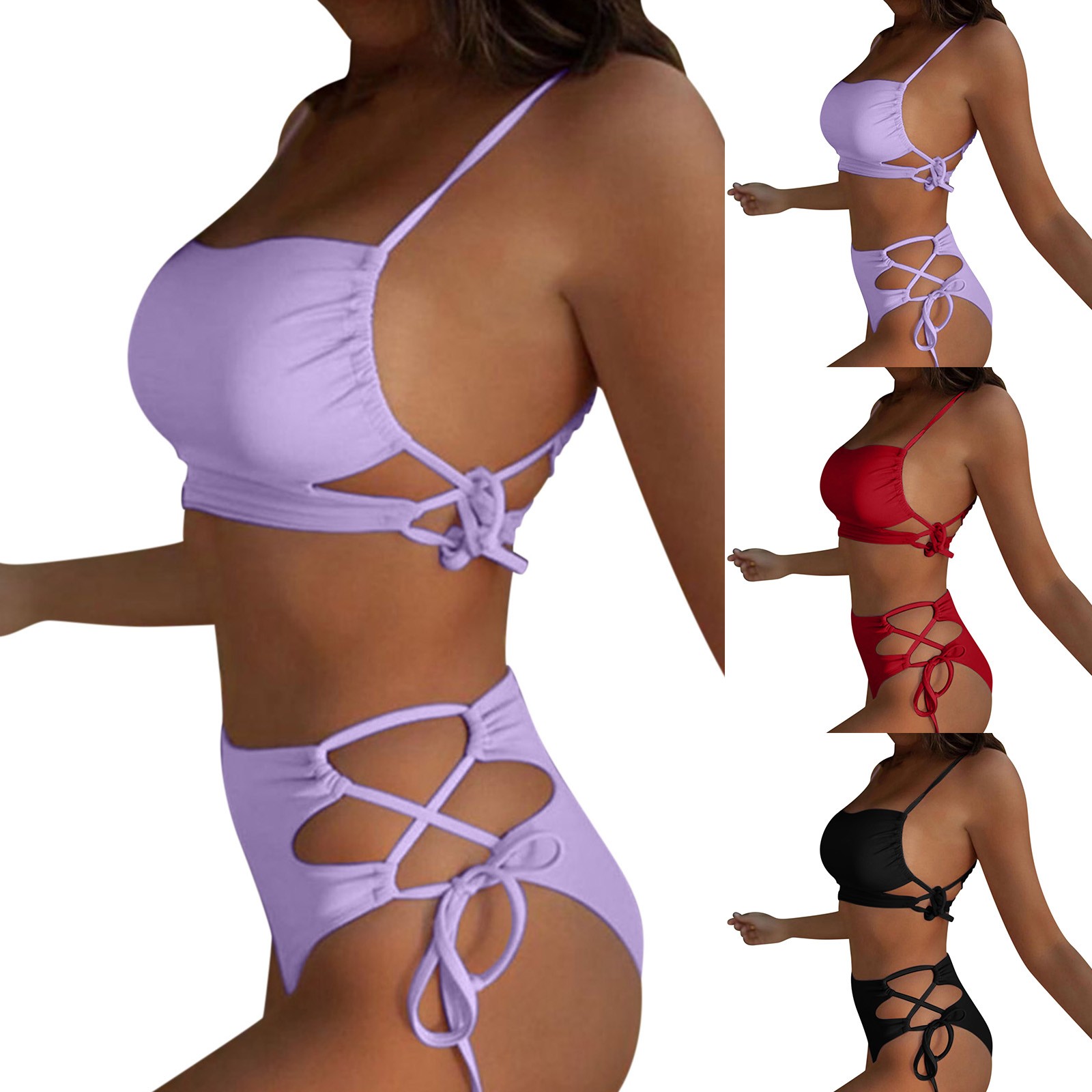 Женский сплошной цвет сексуальный Высокая талия мульти-веревочный раздельный купальник бикини женский купальник