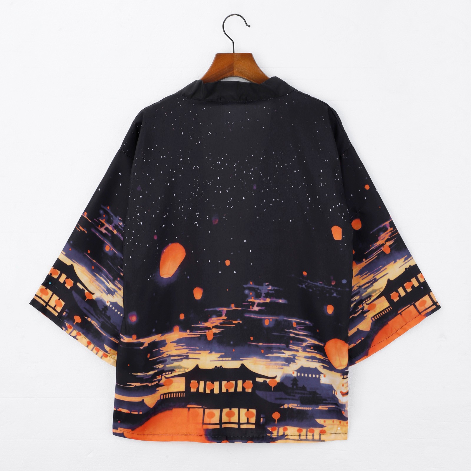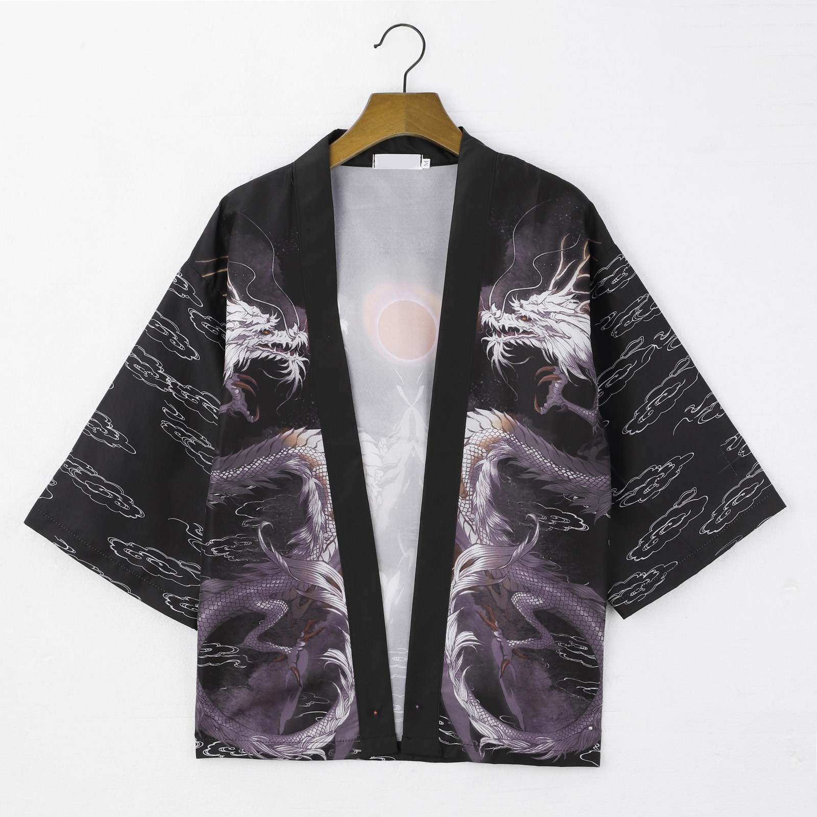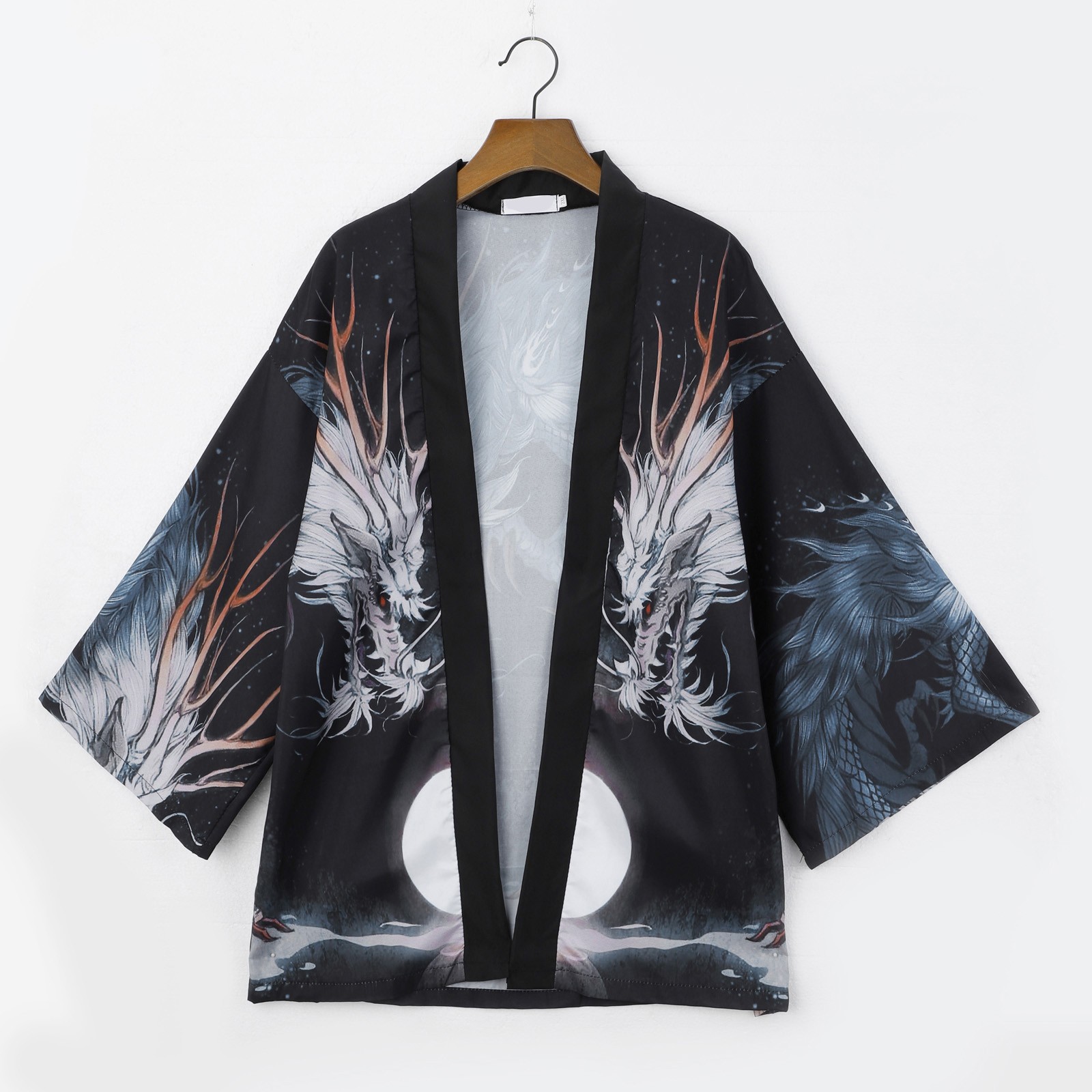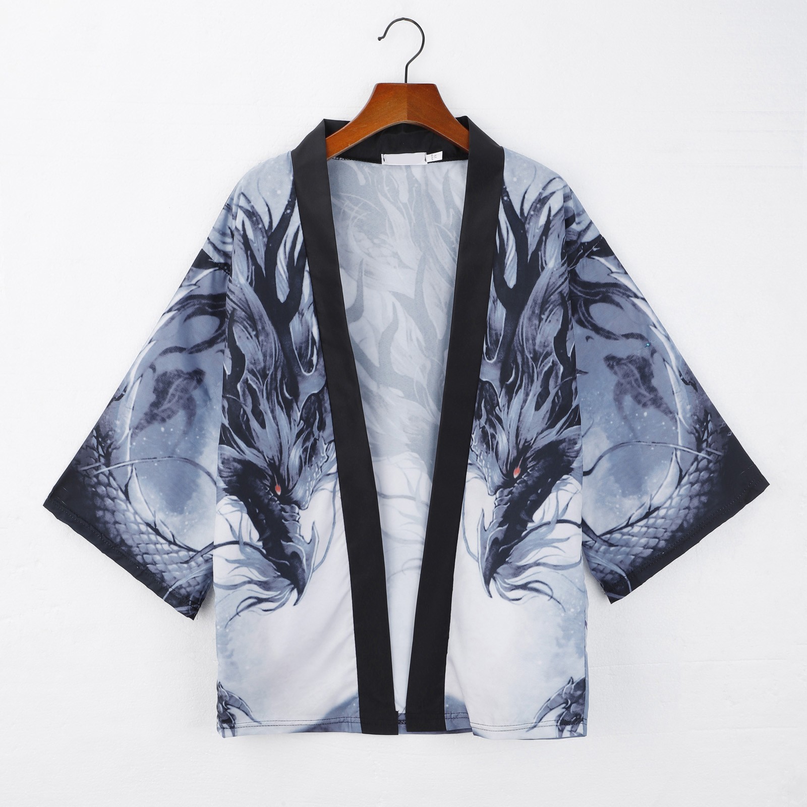 Модное мужское кимоно, кардиган, рубашка оверсайз, популярная рубашка с принтом, даосский Топ