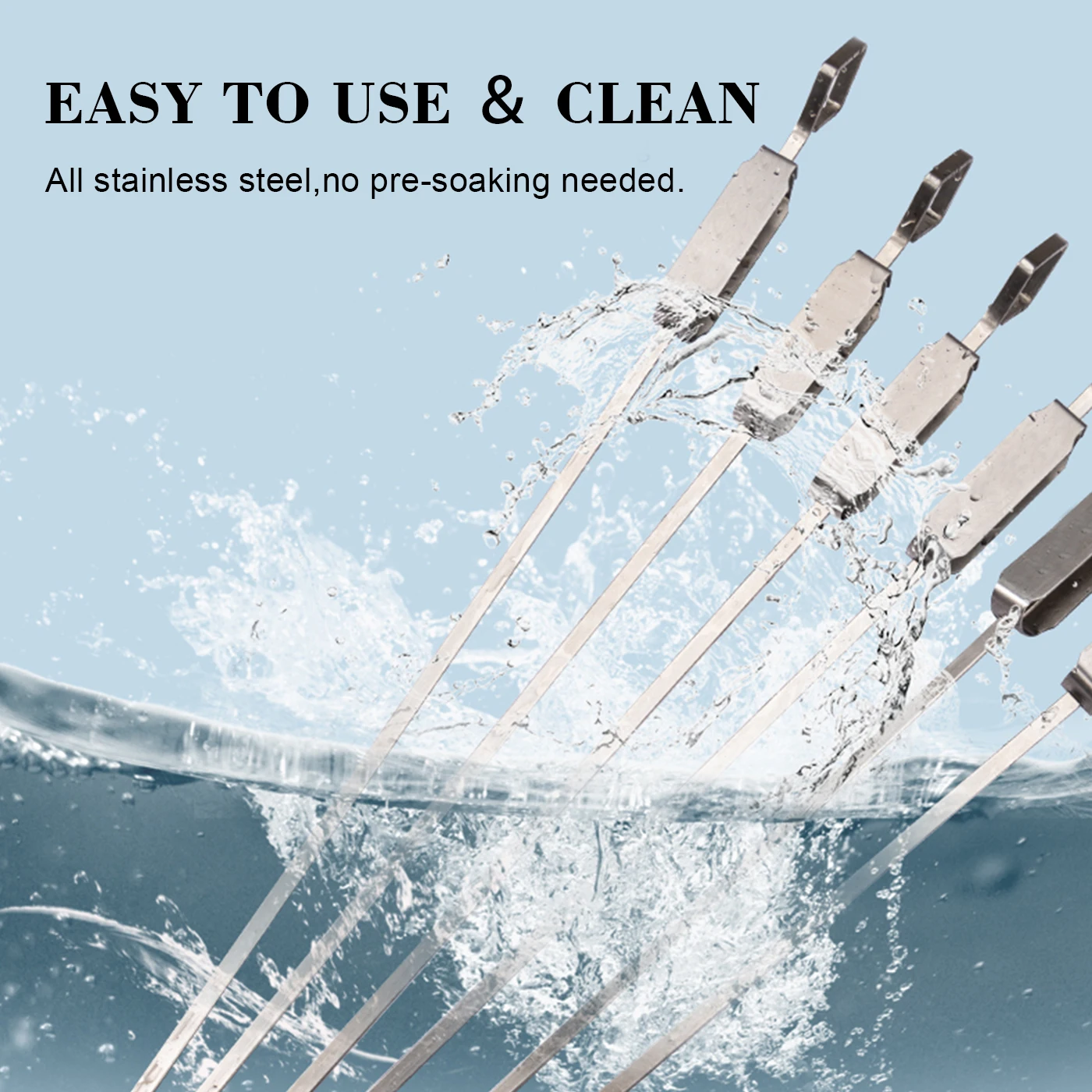 Шпагат шашлыка 【плоское лезвие барбекю шпажки не спиннинг вопрос 】 кабоб шпагат лезвие плоское и широкое. Плоские палочки для барбекю предотвращают перекосы пищи от спиннинга или движения вокруг, когда переворачивают шашлык Шашлыка на гриле. В отличие от круглых лезвий, плоские предотвращают вращение и падение пищи. Он гарантирует, что еда будет приготовлена должным образом со всех сторон.
