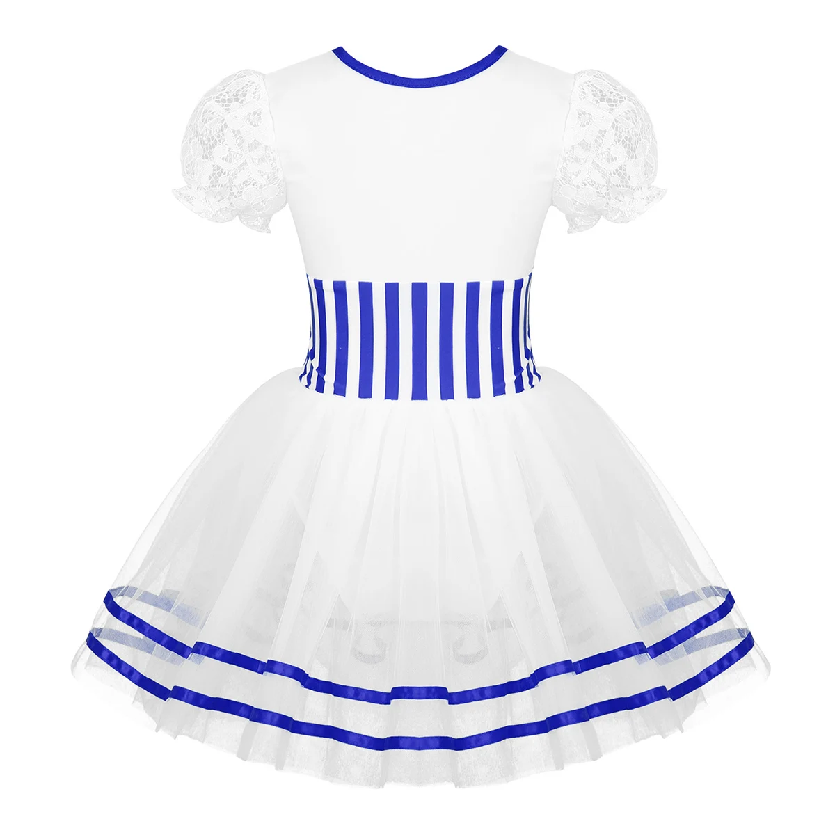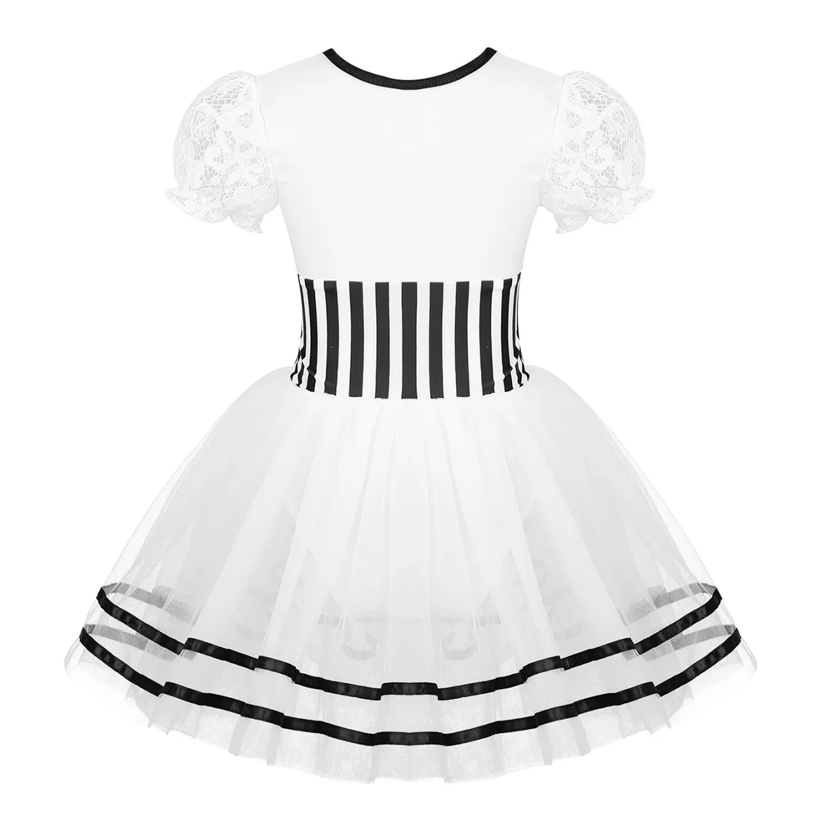 Сетчатые танцевальные костюмы для девочек, кружевные платья в полоску с пышными рукавами для фигурного катания на коньках, платье-трико со скручивающейся спинкой, Лидер продаж, Детская Одежда для танцев