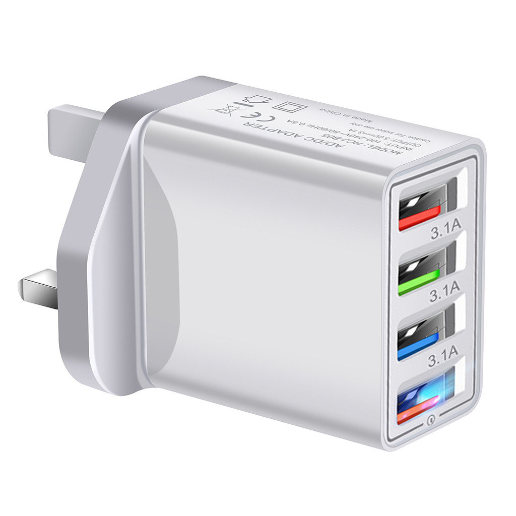 Материал: АБС-пластик и чехол из поликарбоната Вход: AC100-240V 50-60 Гц 0.35A DC5V = 3.5A (макс.) X4USB Ток зарядки: 2100 м Выход: 5 В/3,5a, 9 В/3,1a Размер: 44X20X88 мм (прибл.) Тип штекера: вилка стандарта ВеликобританииПосылка включает в себя: