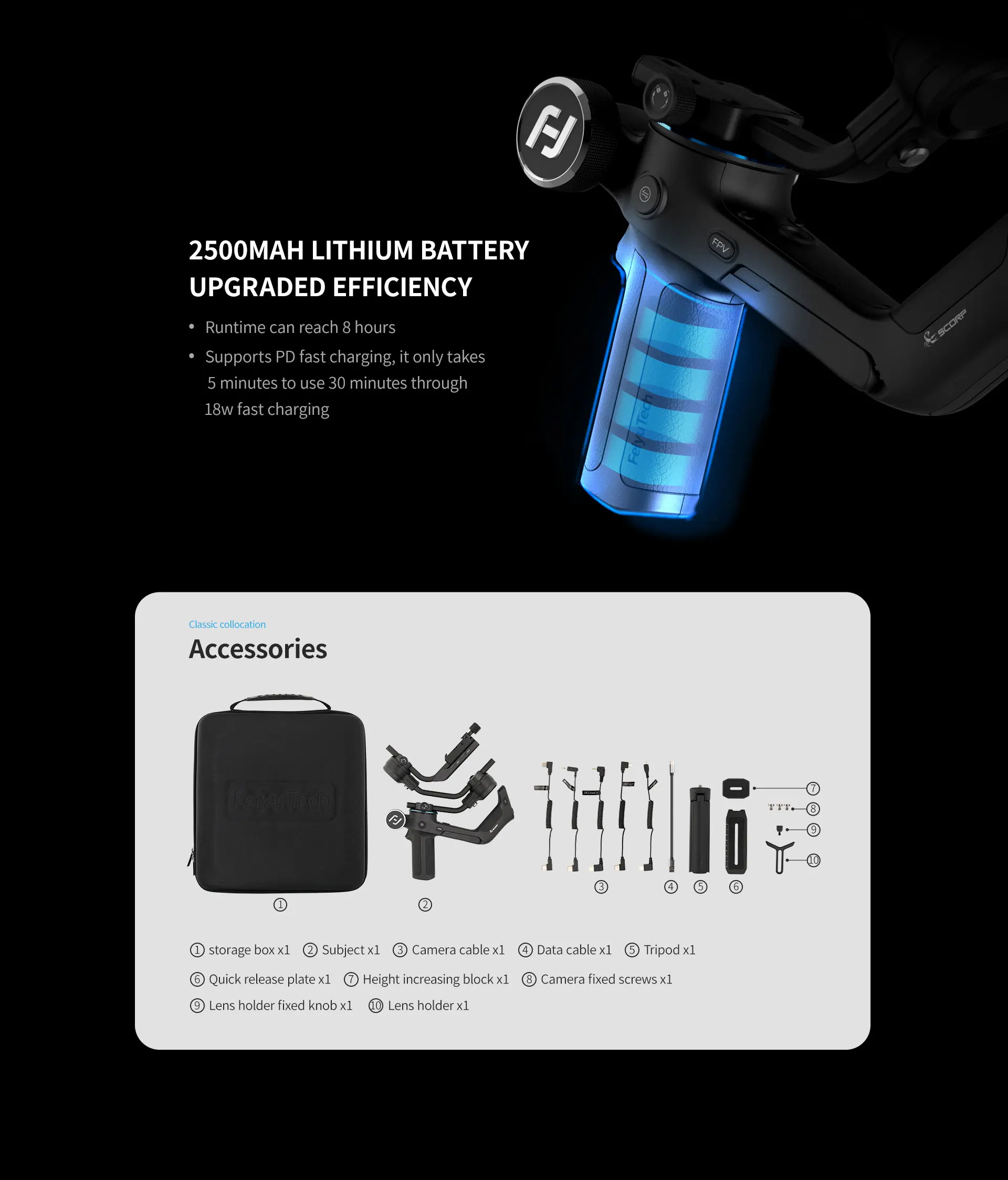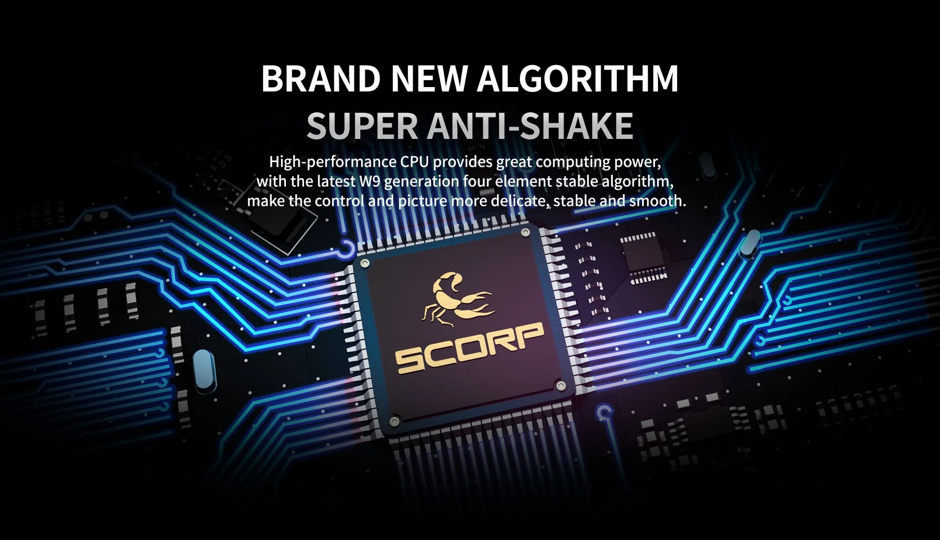 Высокопроизводительный процессор обеспечивает мощную вычислительную мощность, а новейший четырехэлементный алгоритм стабилизации W9 делает управление более точным, а изображение более стабильным и гладким.