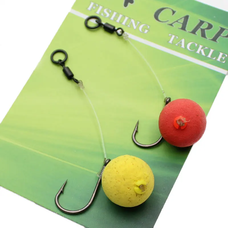 Most popular rigs involve tying hook baits onto rig rings or micro ring swivels with bait floss.