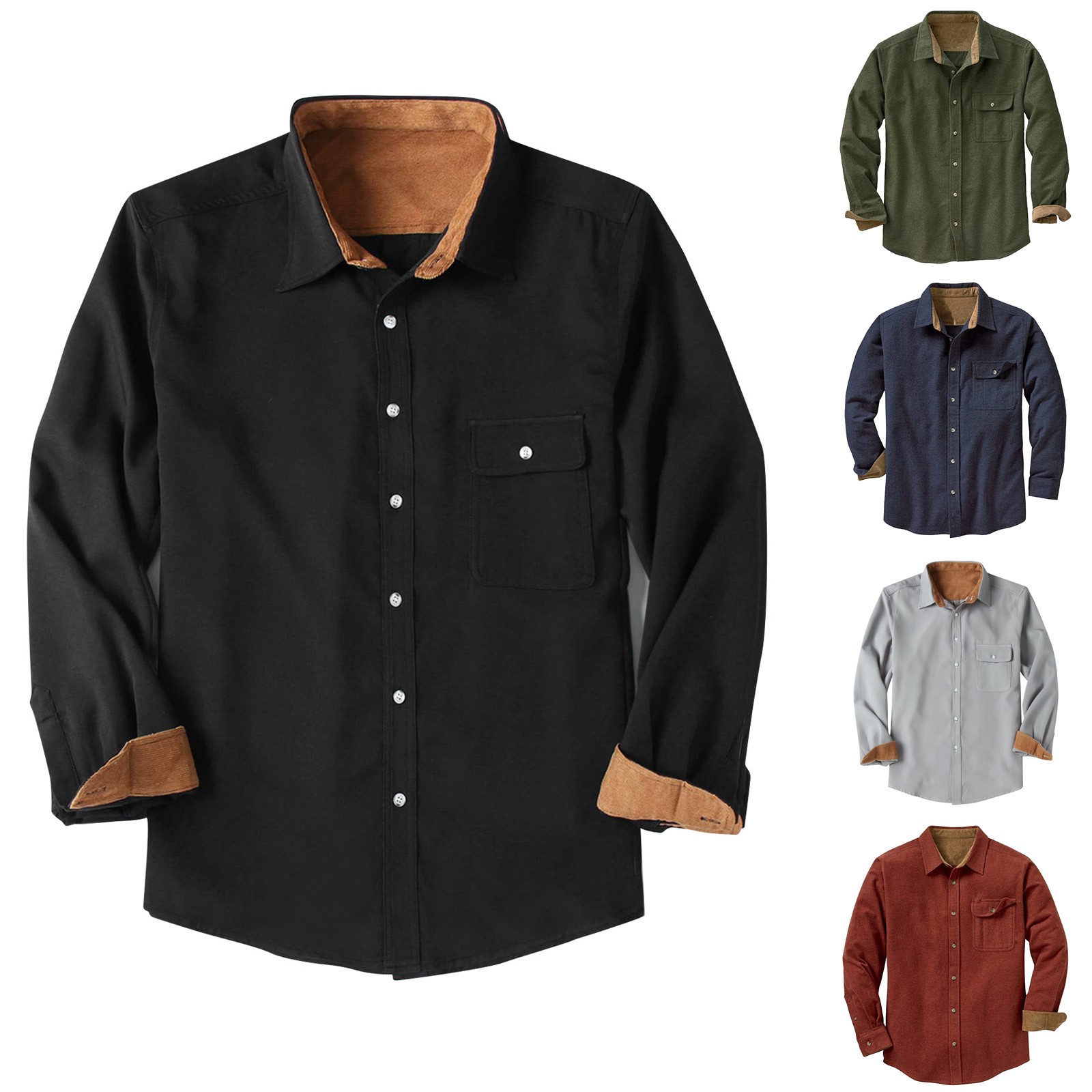 Мужская модная повседневная свободная Однотонная рубашка с отворотом и длинным рукавом, топ, блузка