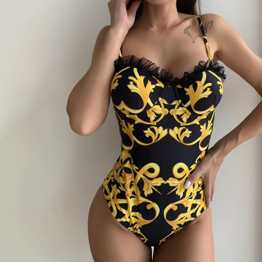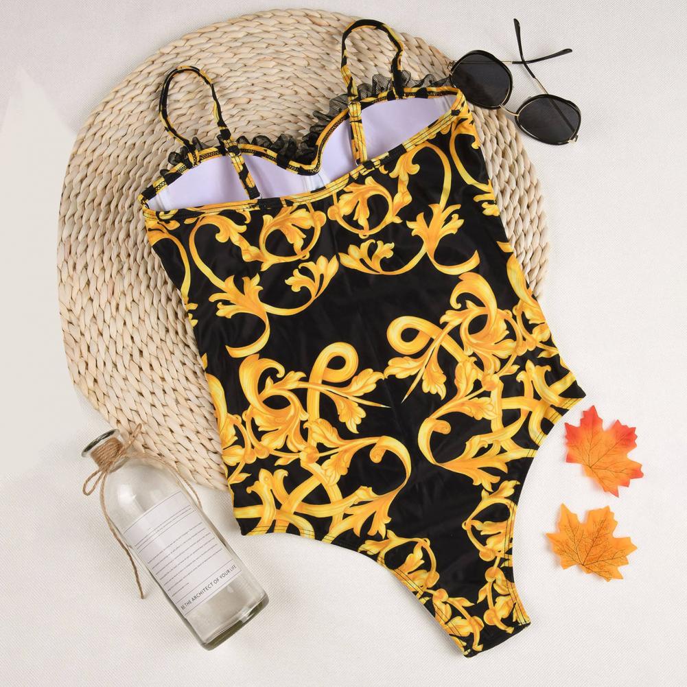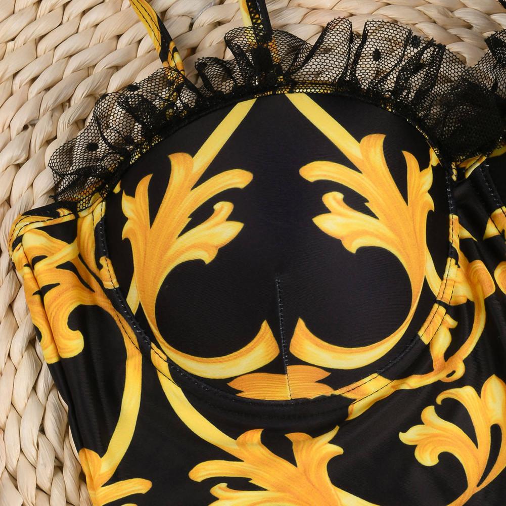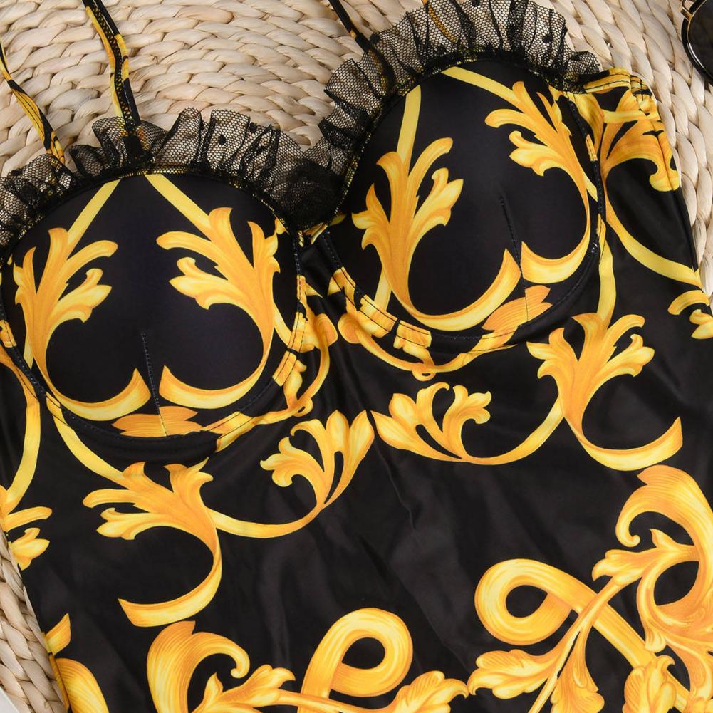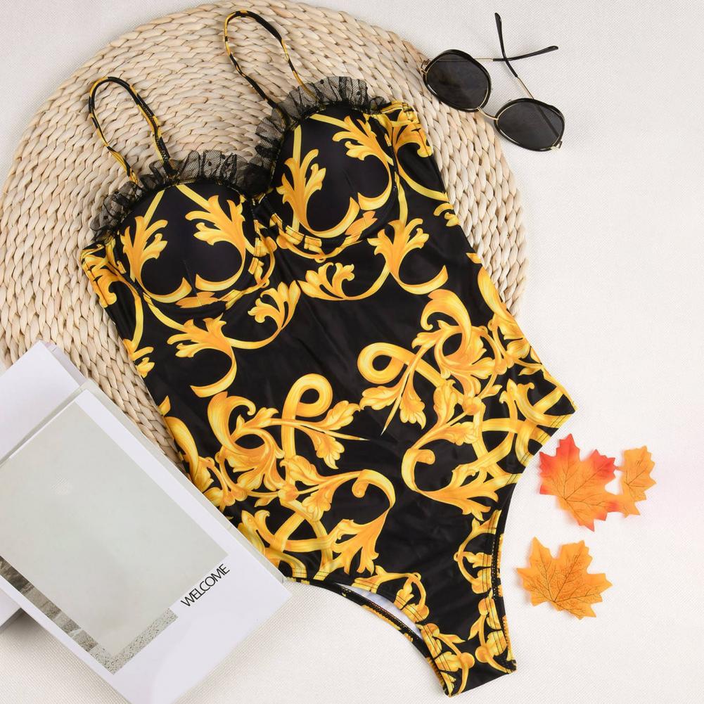 Женское бикини с модным принтом, кружевное лоскутное цельное беспроводное облегающее Монокини, купальник для пляжа