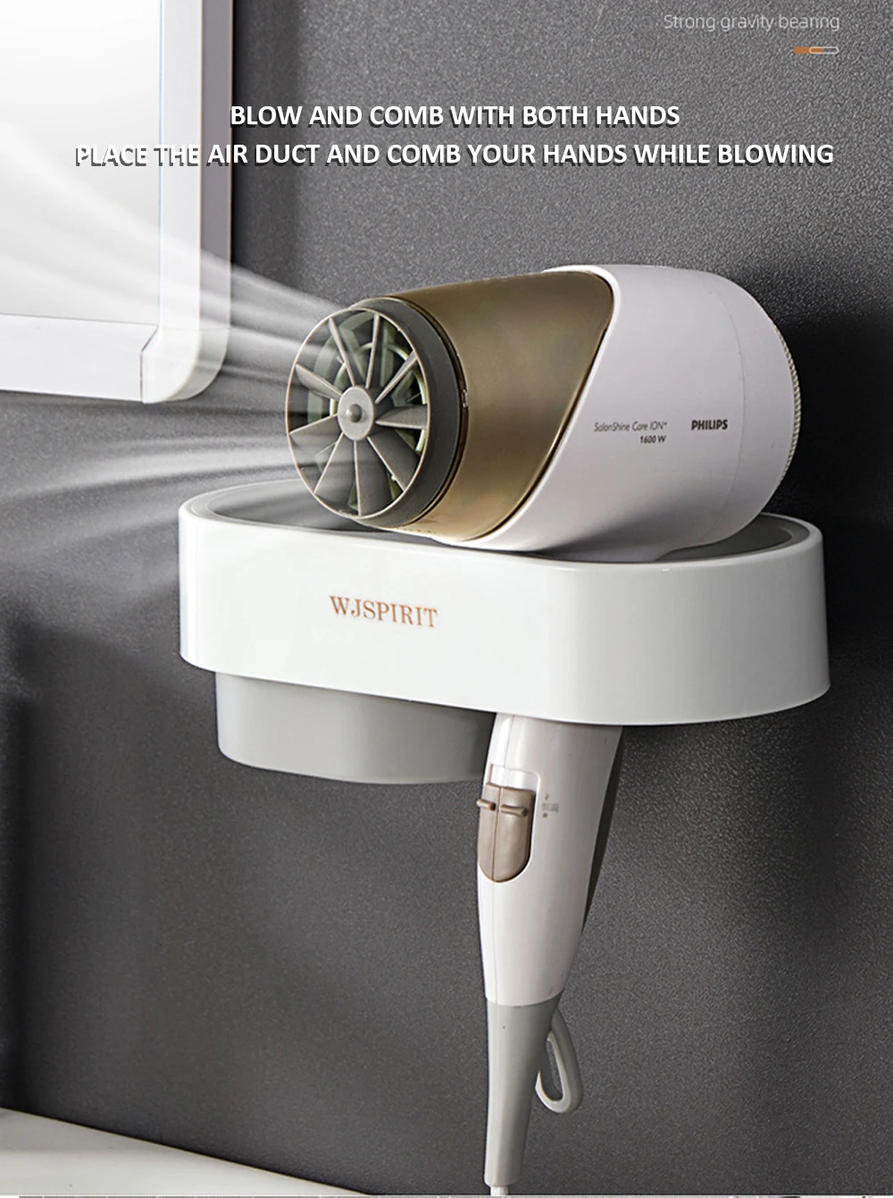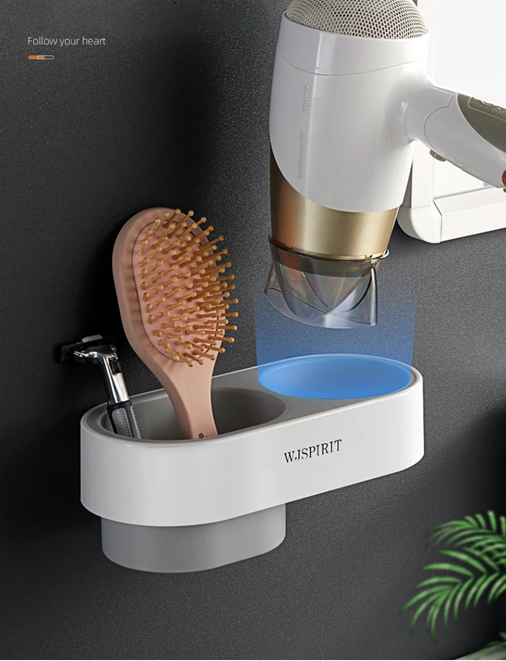 4. Настенный держатель для фена, простая установка, защита от воды и влаги.