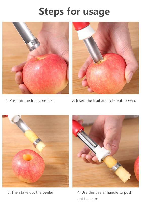 Название: яблочный корер из нержавеющей стали для удаления яблок и яблок, фруктовый сердечник для откачки 2 в 1, термоусадочная Овощечистка для фруктов