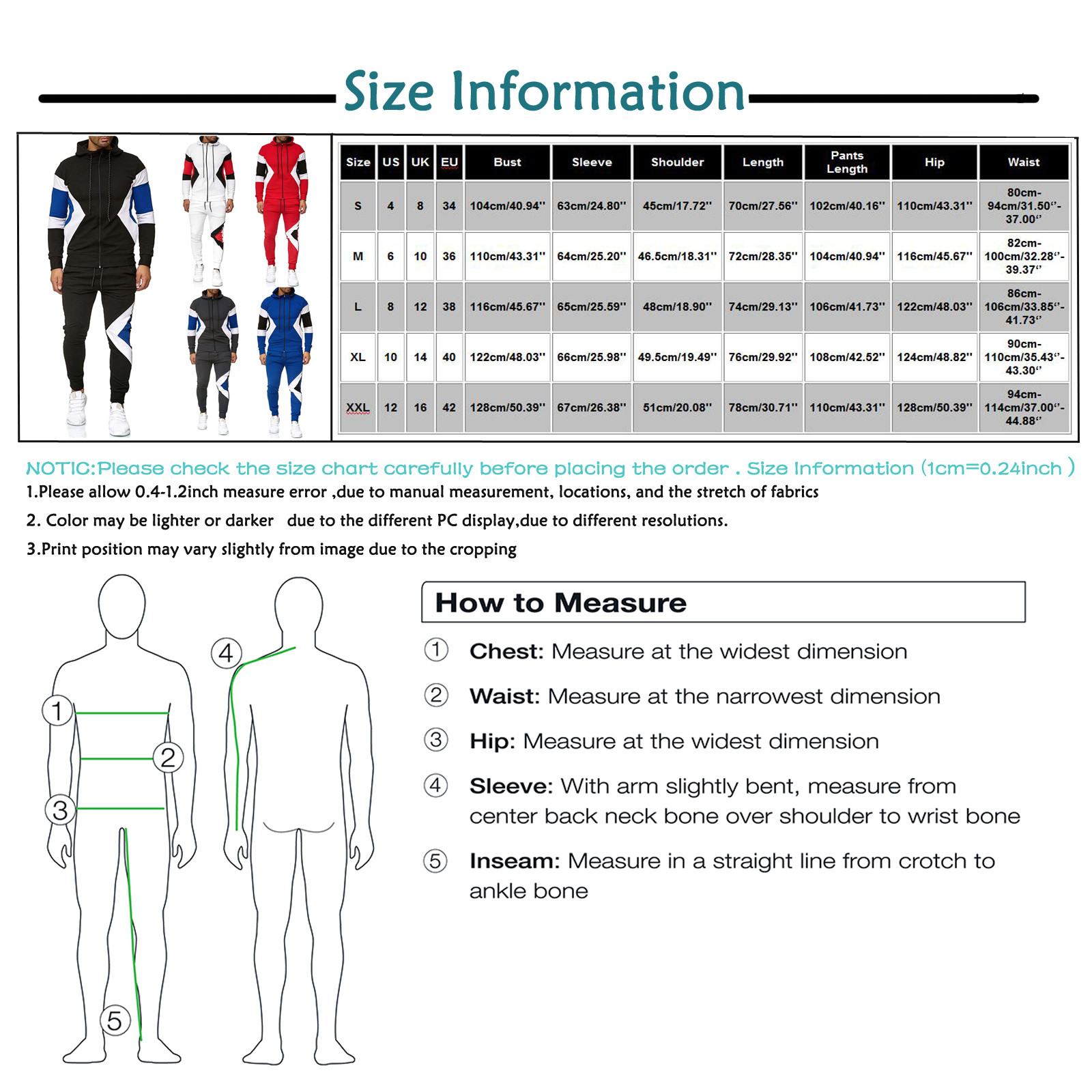 Размеры США Великобритания ЕС Бюст Рукав Плечо Длина Длина брюк Бедра Талия S 4 8 34 104 см/40,94'' 63 см/24,80'' 45 см/17,72'' 70 см/27,56'' 102 см/40,16'' 110 см/43,31'' 80 см-94 см/31,50 ''-37,00'' М 6 10 36 110 см/43,31'' 64 см/25,20'' 46,5 см/18,31'' 72 см/28,35'' 104 см/40,94'' 116 см/45,67'' 82 см-100 см/32,28 ''-39,37'' L 8 12 38 116 см/45,67'' 65 см/25,59'' 48 см/18,90'' 74 см/29,13'' 106 см/41,73'' 122 см/48,03'' 86 см-106 см/33,85 ''-41,73'' XL 10 14 40 122 см/48,03'' 66 см/25,98'' 49,5 см/19,49'' 76 см/29,92'' 108 см/42,52'' 124 см/48,82'' 90 см-110 см/35,43 ''-43,30'' XXL 12 16 42 128 см/50,39'' 67 см/26,38'' 51 см/20,08'' 78 см/30,71'' 110 см/43,31'' 128 см/50,39'' 94 см-114 см/37,00 ''-44,88''