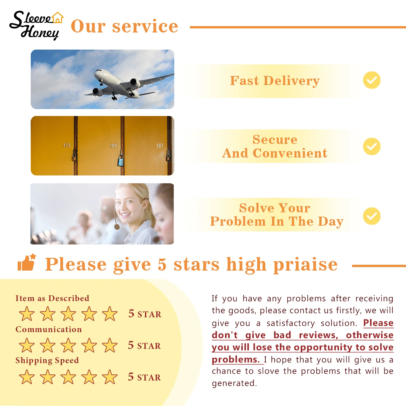 Мы хотим ваше 100% удовлетворение. Если вы не удовлетворены товарами, которые вы получили от нас, и товар отличается от описания. Пожалуйста, свяжитесь с нашей службой поддержки клиентов. Возврат, обмен или замена предлагаются соответственно.
