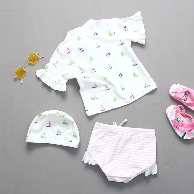Детский купальный костюм из 3 предметов; Купальный костюм с защитой от ультрафиолета для маленьких девочек; Пляжная одежда с длинными рукавами для малышей; Купальный костюм для детей