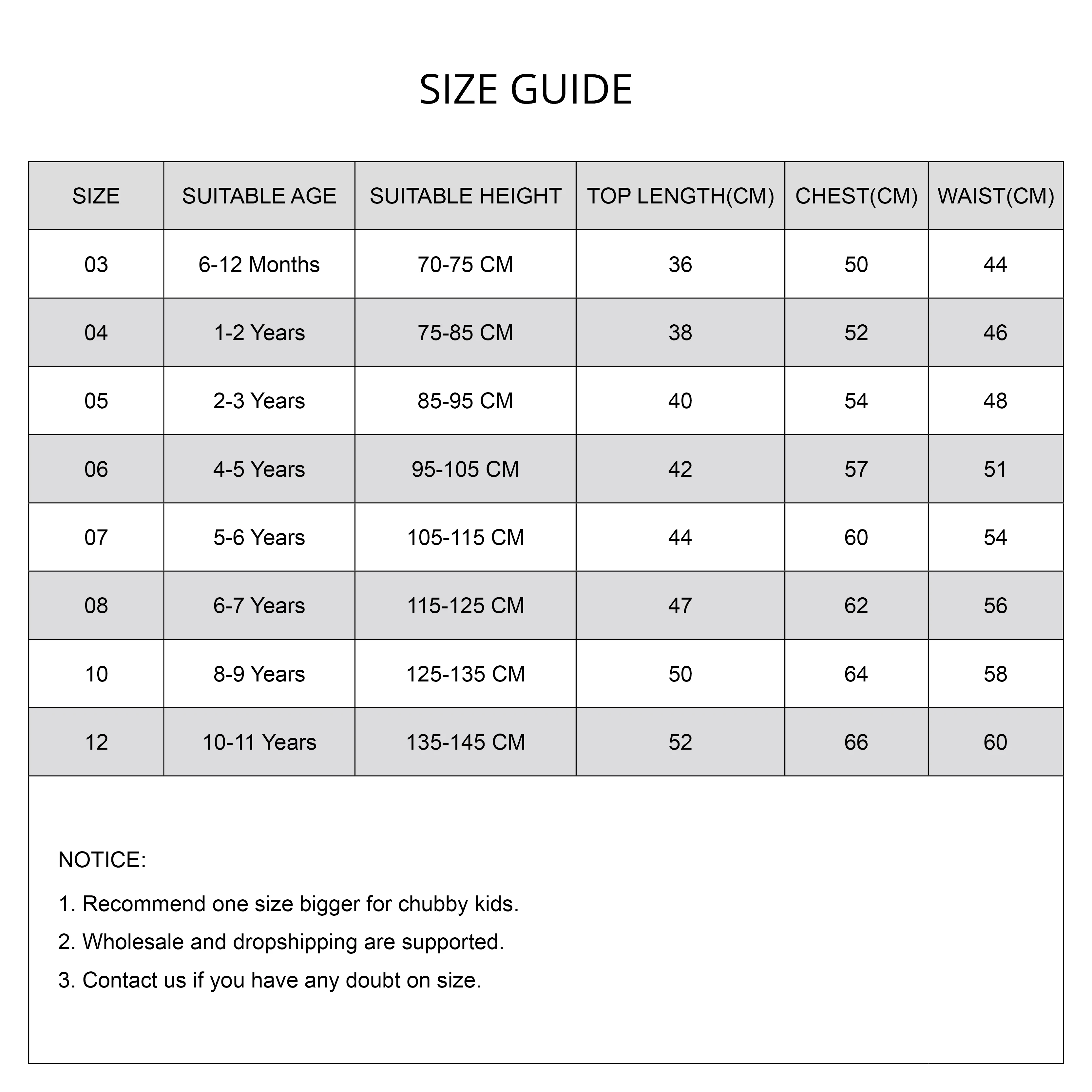 Таблица размеров