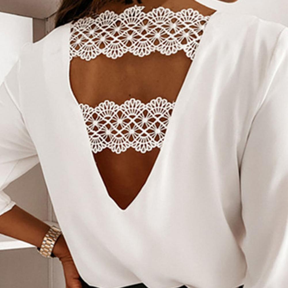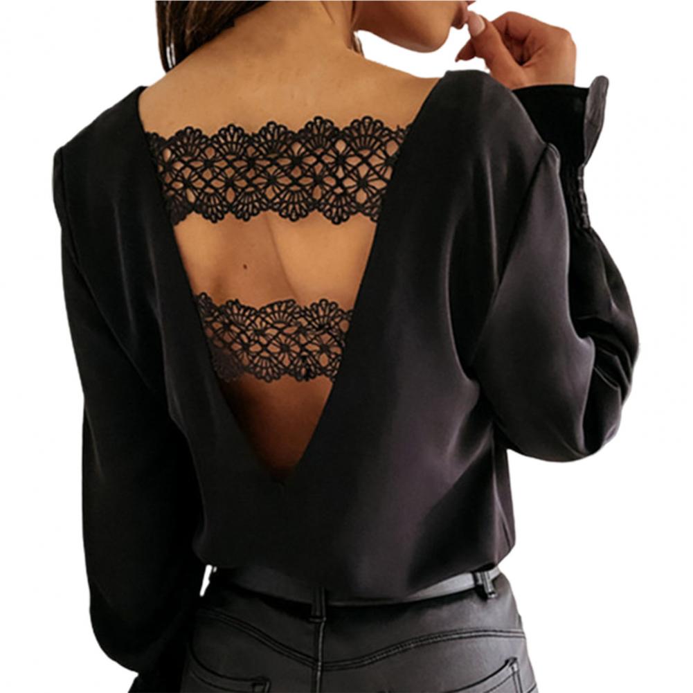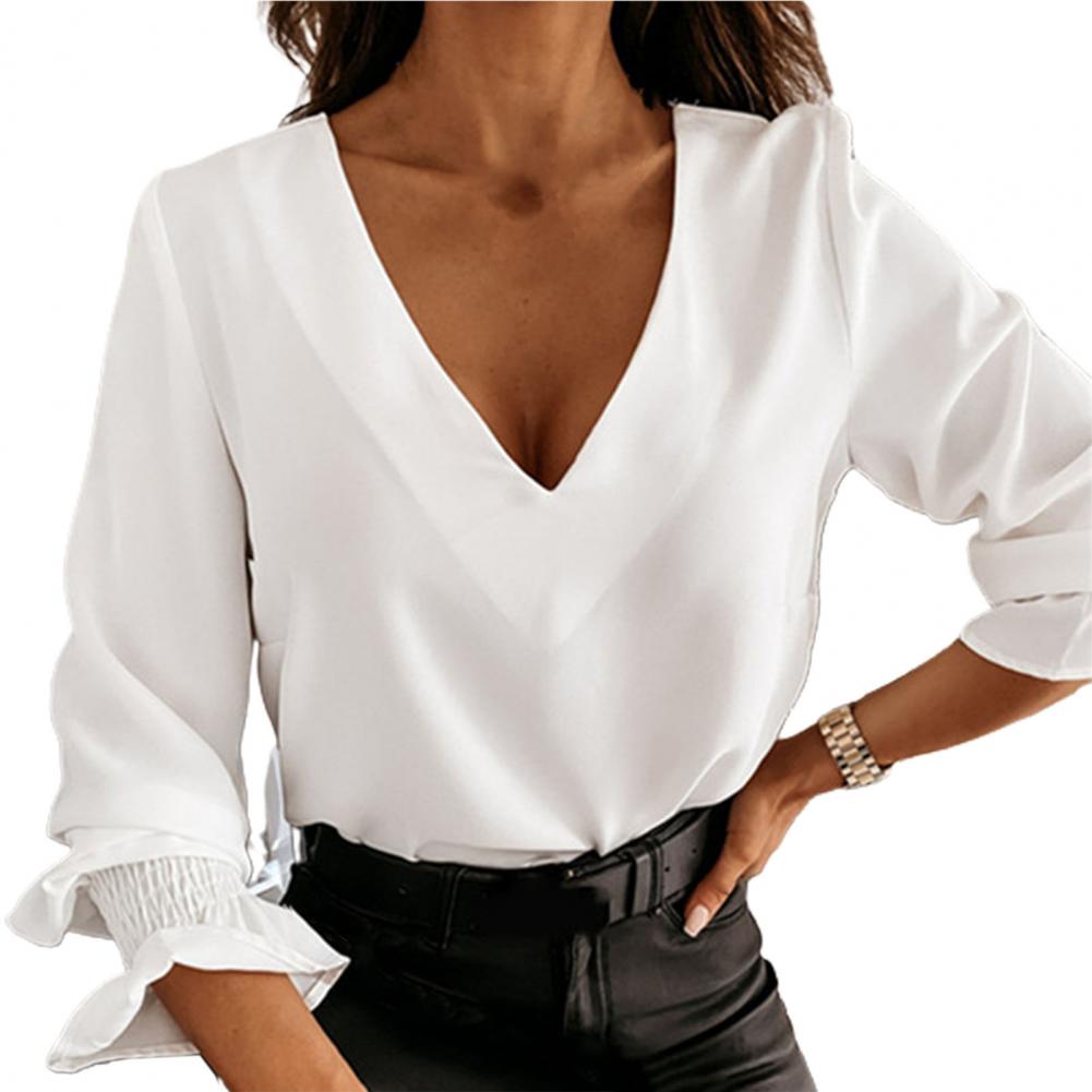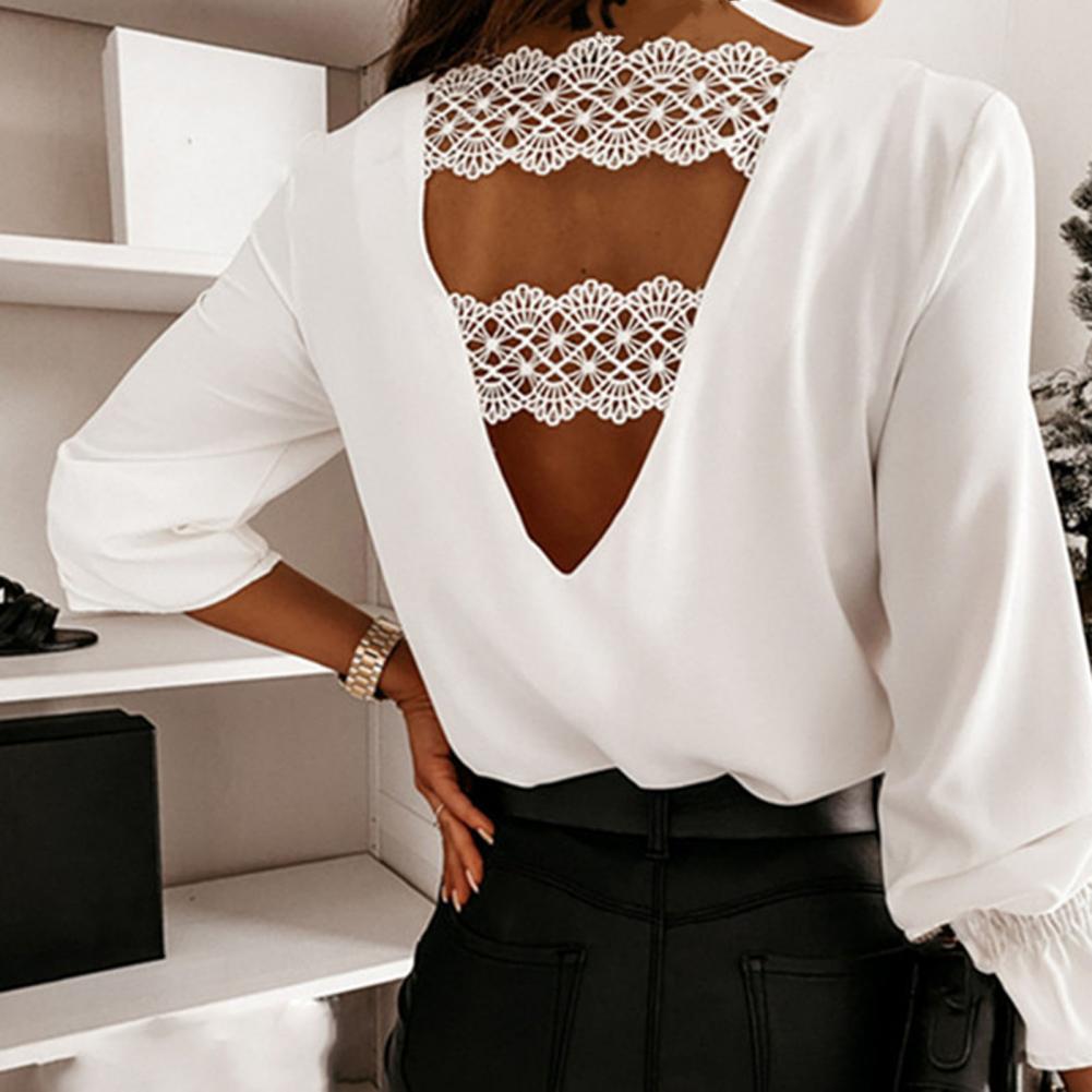 Женская рубашка с v-образным вырезом, расклешенная, с длинными рукавами, с кружевами, женская модная рубашка, топ для свиданий