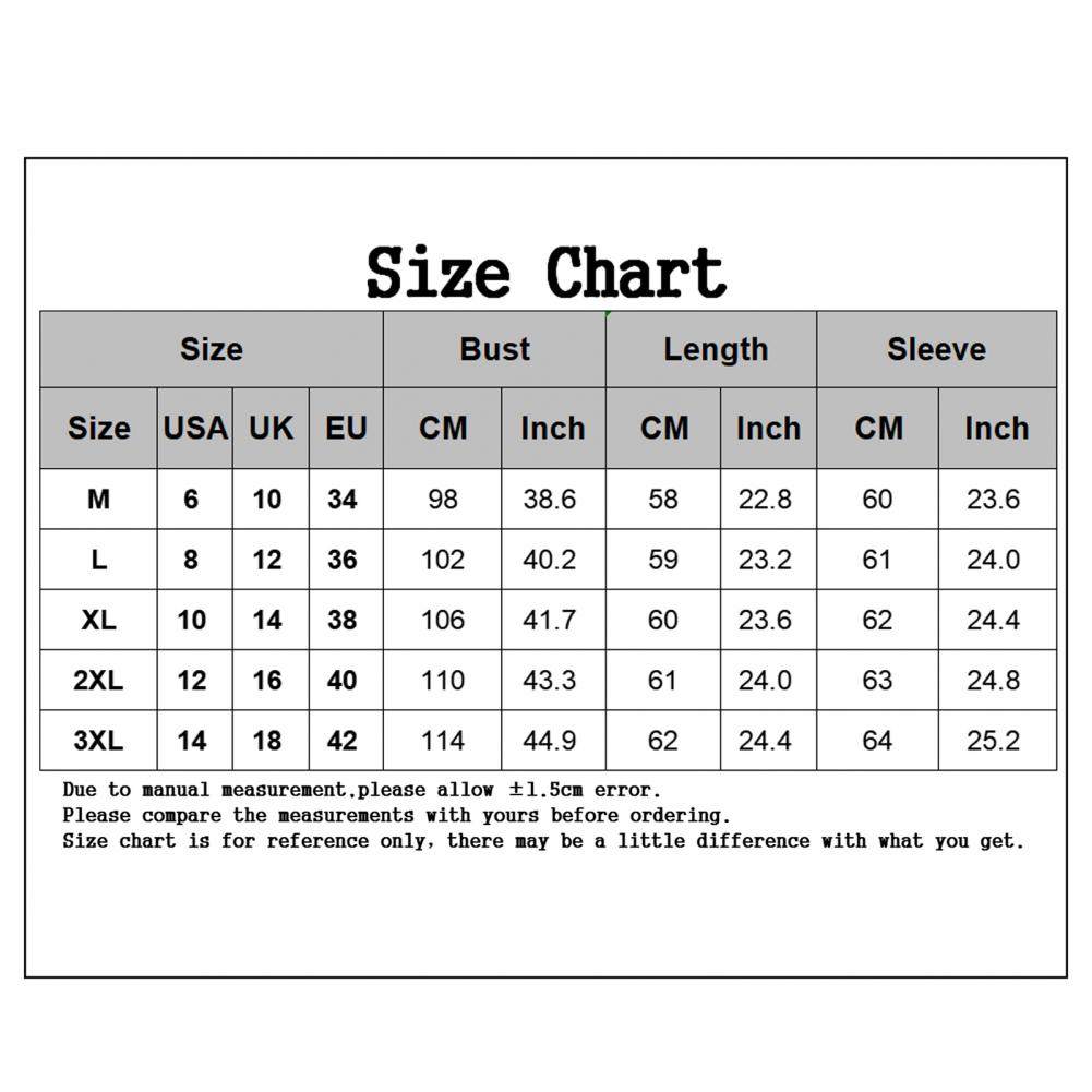 Размер: 3XL, обхват груди: 114 см/44,9 дюйма, рукав: 64 см/25,2 дюйма, длина: 62 см/24,4 дюйма (прибл.)