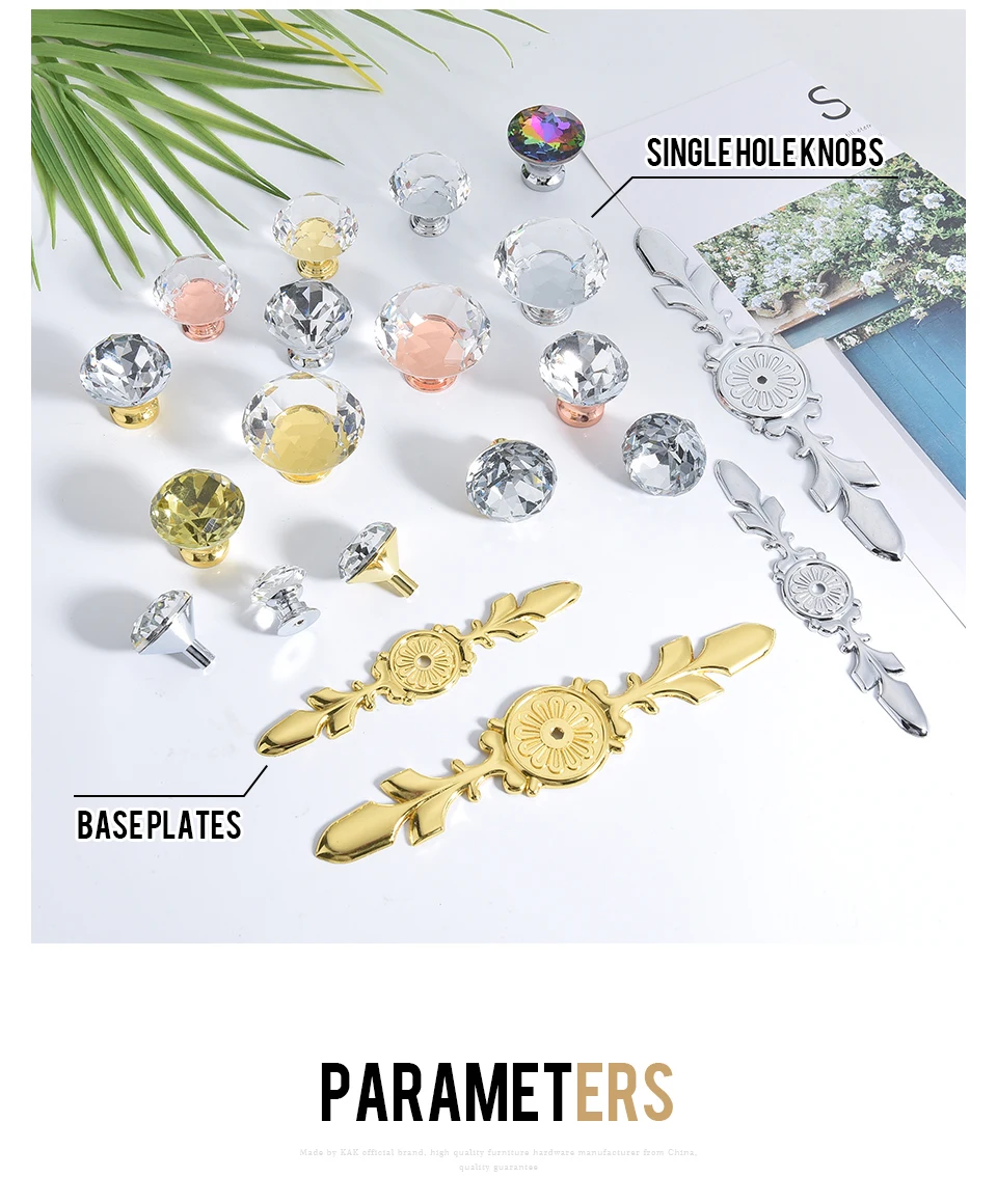 Базовые пластины и ручки из хрустального стекла с одним отверстием продаются отдельно, так что вы можете комбинировать различные наборы дизайна самостоятельно!