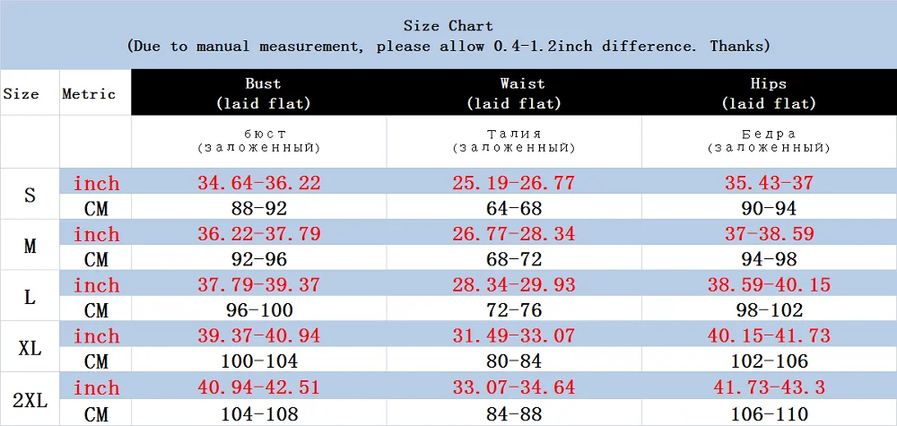 Теплая подсказка: 1. Если вы не уверены в размере, пожалуйста, свяжитесь с нашей службой поддержки клиентов или оставьте сообщение, спасибо 2. Подробной таблицей размеров информация о товаре: единица измерения-сантиметр/измерения: 1 дюйм = 2,54 см, 1 см = 0,39 дюймов 3.To при выборе размера точнее, вы можете выбрать подобную одежду, чтобы сравнить детали размера, О длине, обхвате груди, талии, плечах. Пожалуйста, ознакомьтесь с информацией о размерах перед выбором размера, спасибо! 4. Если ваши измерения находятся между двумя размерами, советуем выбрать больший размер. 5. При ручном измерении возможна определенная погрешность в 1-3 см 6. Разные компьютерные экраны могут отображать разные цвета, даже если они одного цвета. Поэтому, пожалуйста, учитывайте разумную разницу в цвете, фотографии или наружная съемка и съемка в помещении будут иметь определенную разницу в цвете