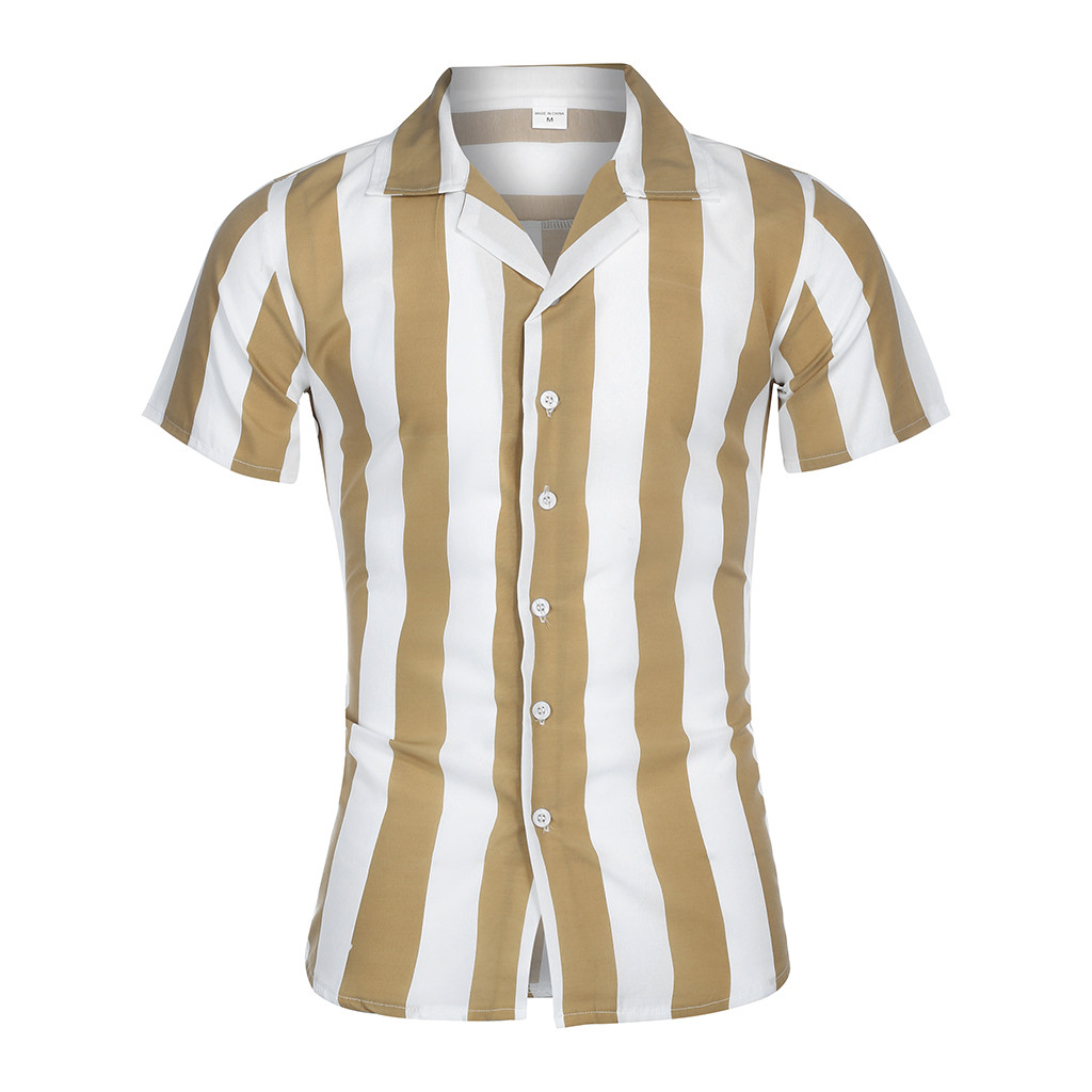 Мужская модная Свободная рубашка с коротким рукавом в разноцветную полоску