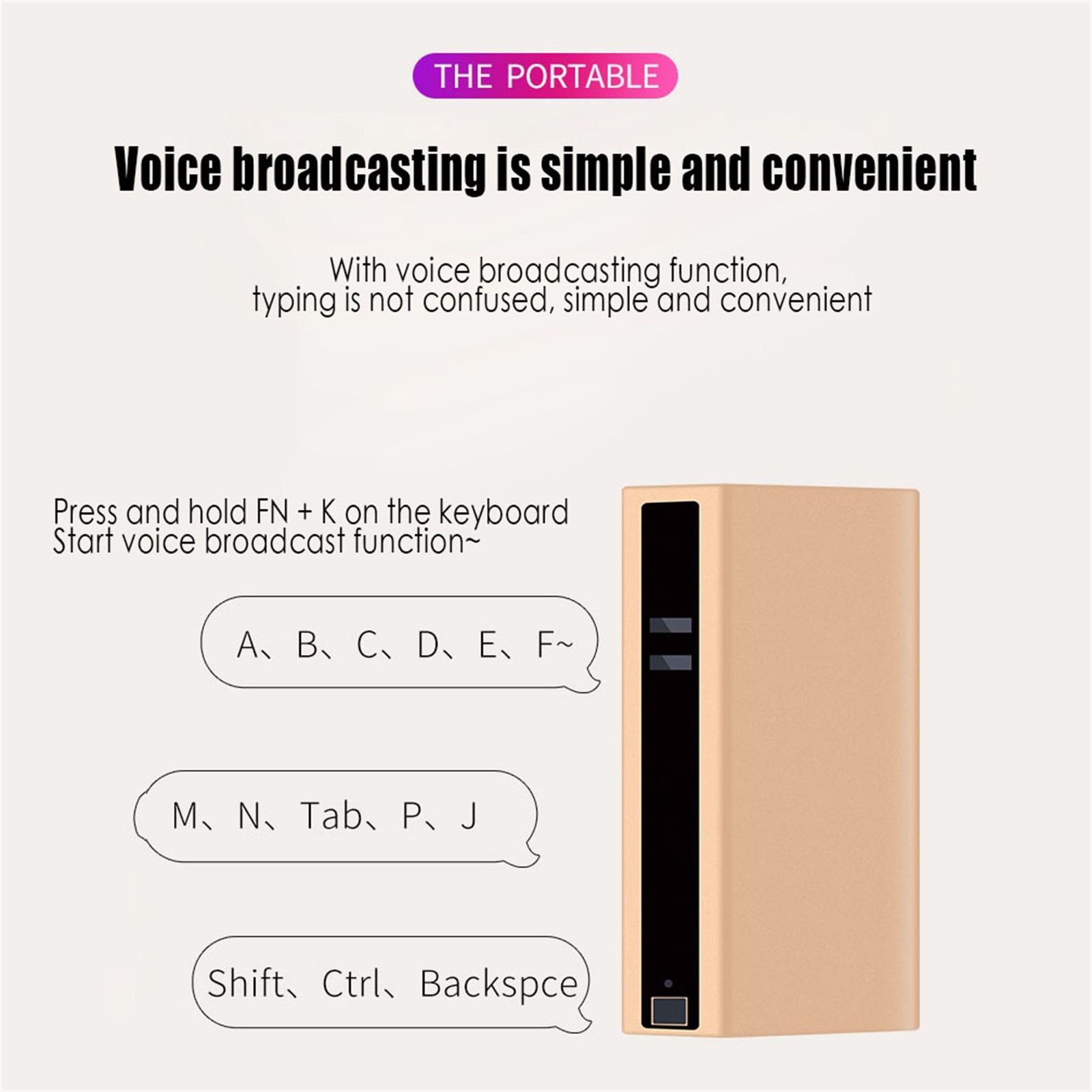 Маленький и портативный, стильный внешний вид, многоцветные на выбор, металлический материал Два способа подключения: ①Wired соединение ②Wireless соединение Голосовое вещание, простое и удобное: встроенная функция голосового вещания, легко и удобно вводить, нажимать и удерживать клавиатуру Fn + k, клавиатура начнет функцию голосового вещания Доступны пять цветов, чтобы соответствовать вашей личности, чтобы удовлетворить различные потребности различных групп людей Это лучший выбор для отдыха и развлечений, работы и офиса, а также подарковХарактеристики:
