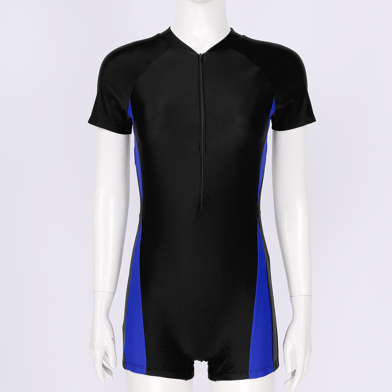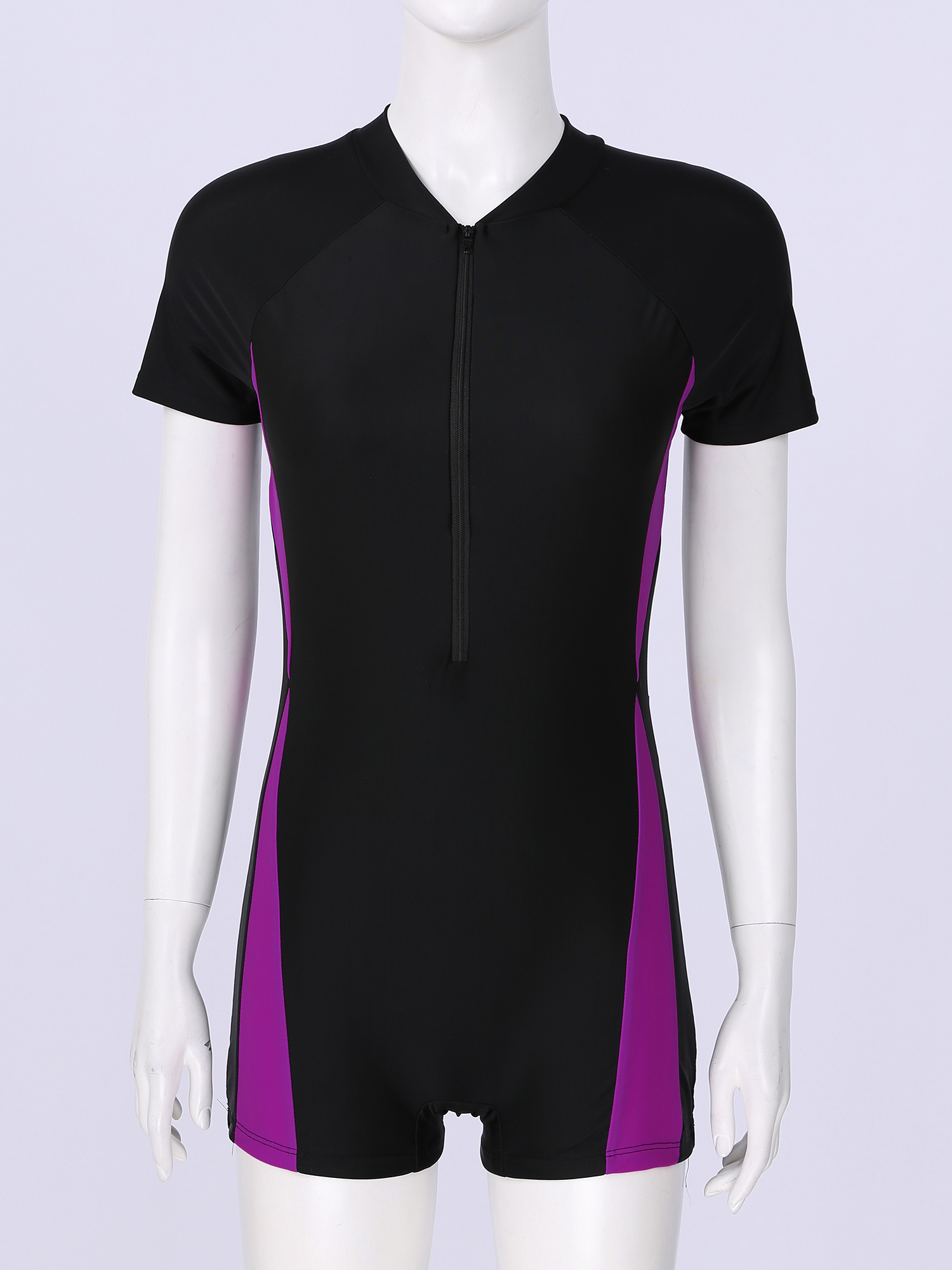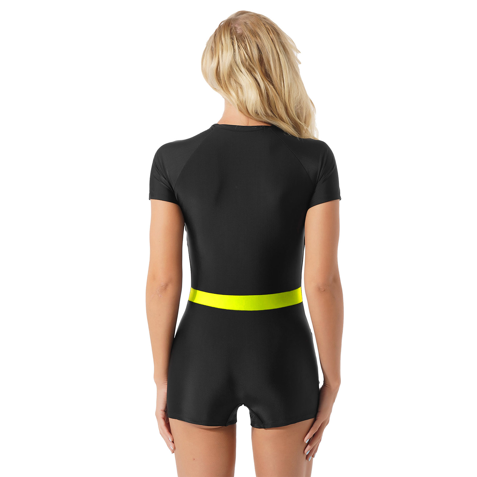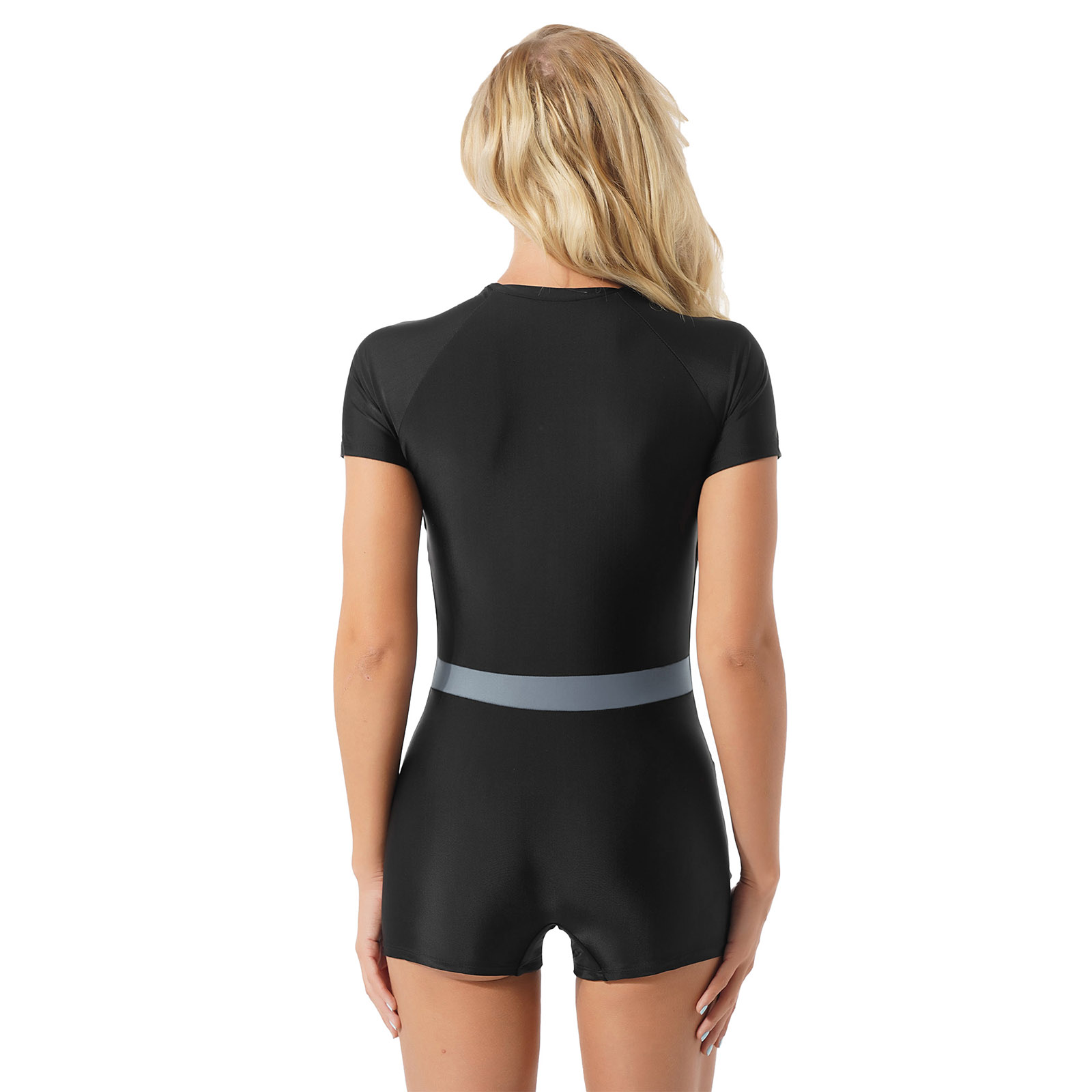Женский цельный лоскутный купальник с короткими рукавами со съемными накладками спереди на молнии комбинезон короткий боди пляжный купальник