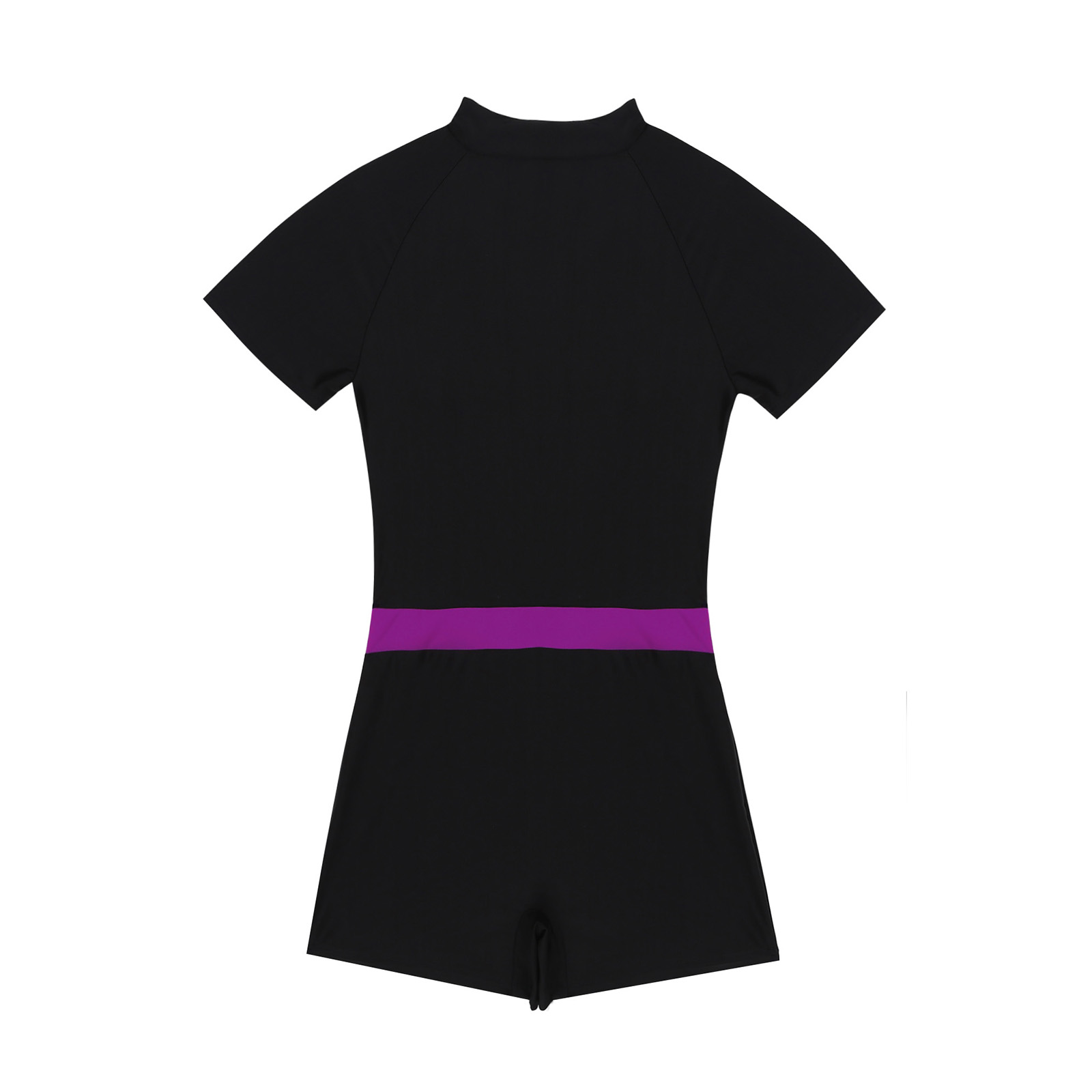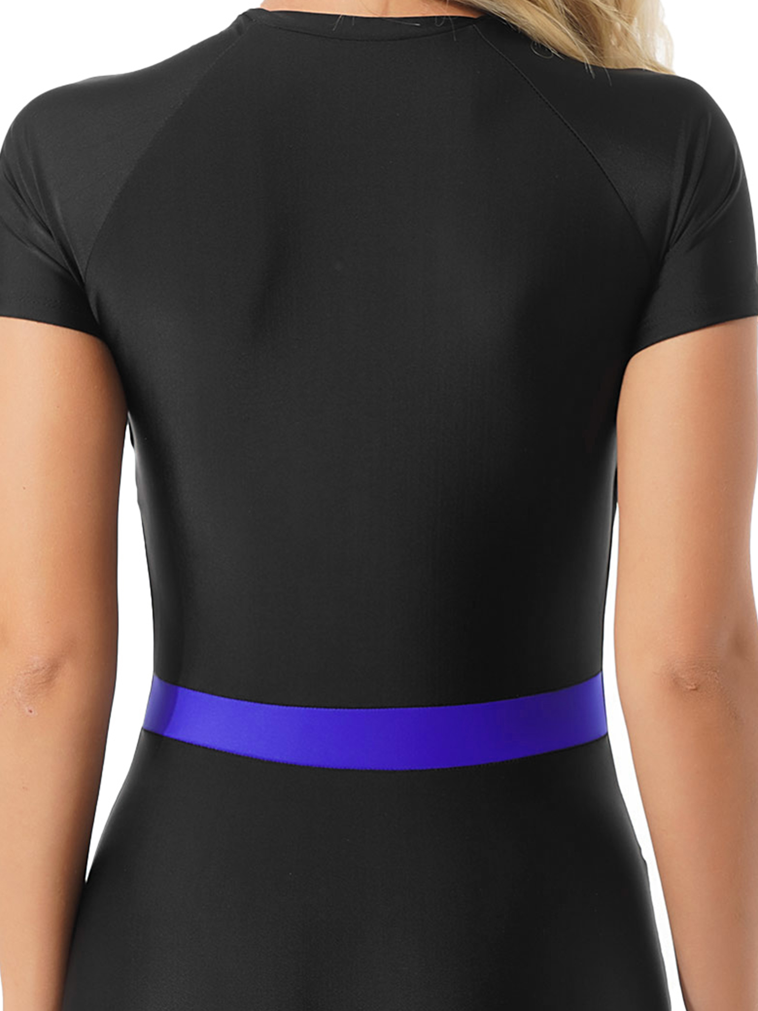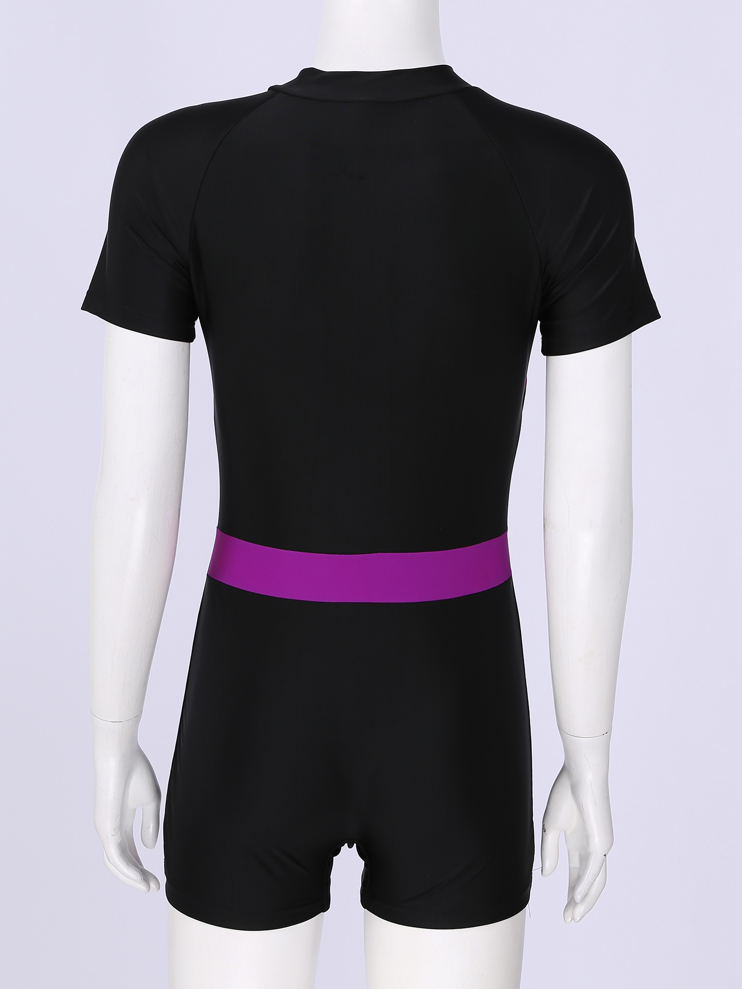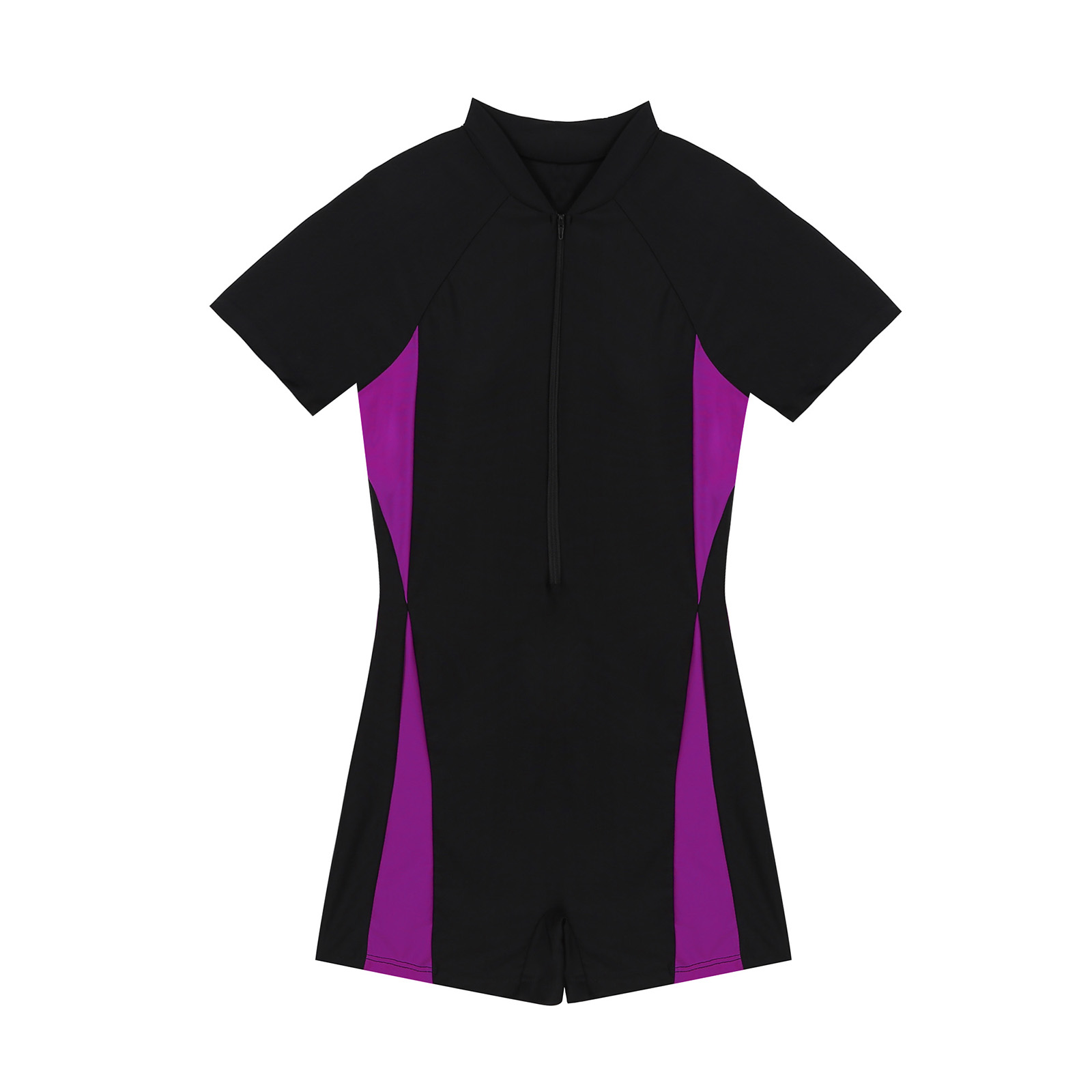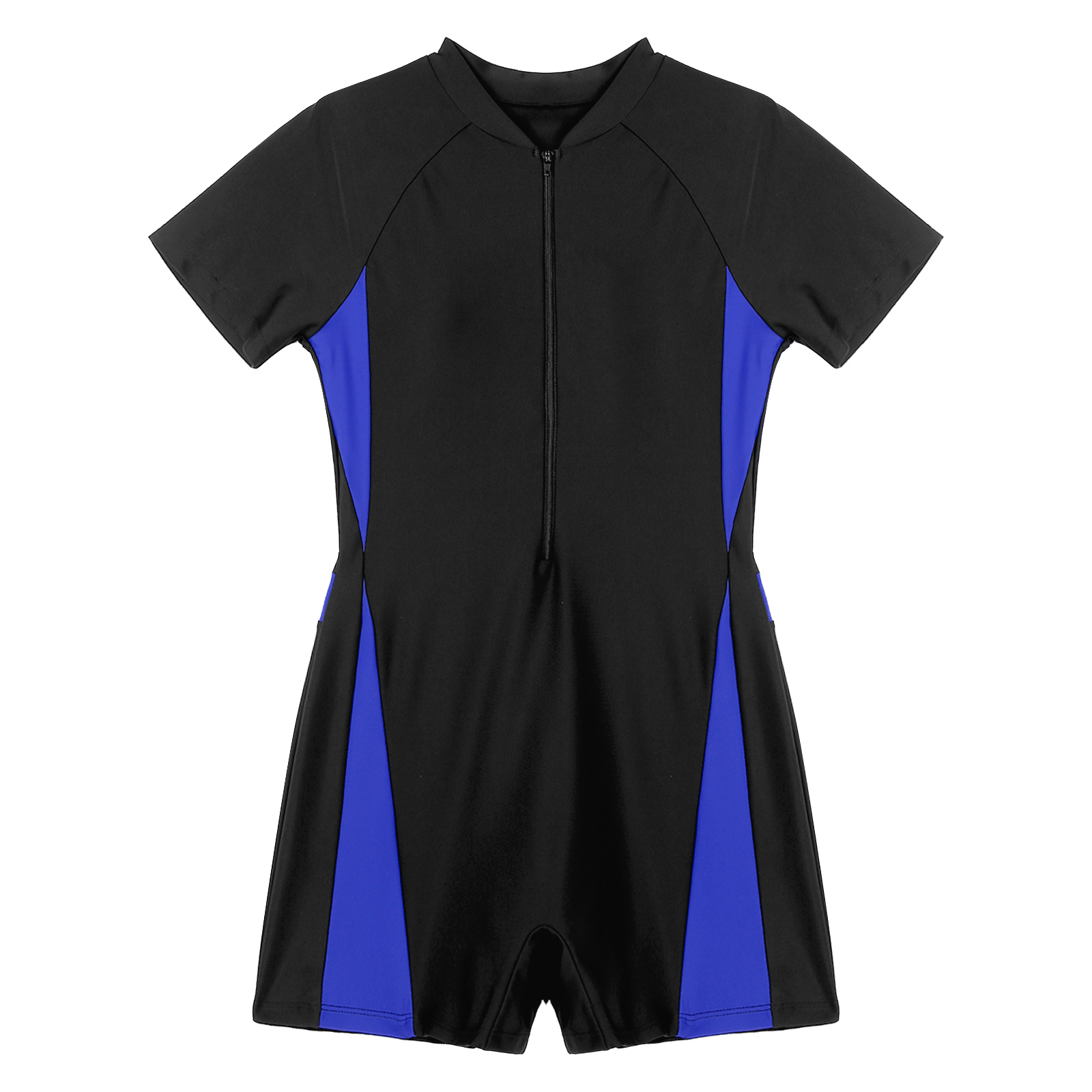 Женский цельный лоскутный купальник с короткими рукавами со съемными накладками спереди на молнии комбинезон короткий боди пляжный купальник