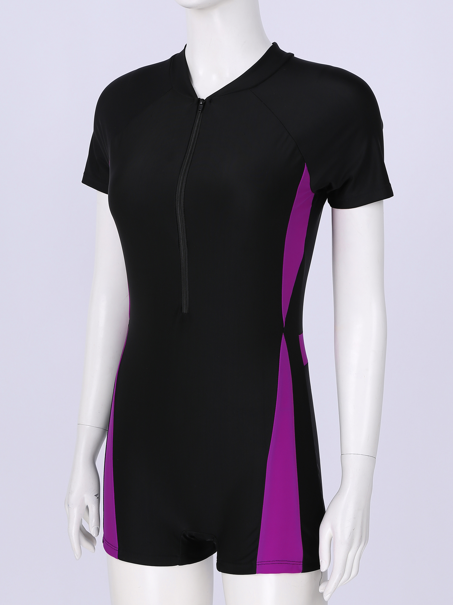 Женские шорты со стоячим воротником и короткими рукавами, съемные подкладки, контрастный цвет, застежка-молния спереди, шорты, боди, купальники.