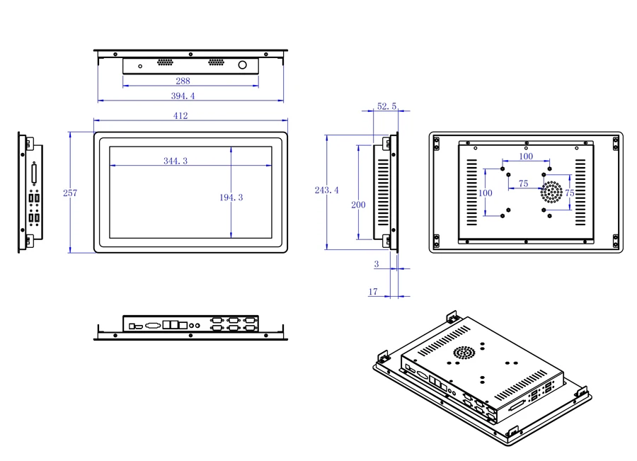 10,4/12,1/15 дюймов TFT ЖК-дисплей, соотношение сторон 4:3, Разрешение 1024*768.