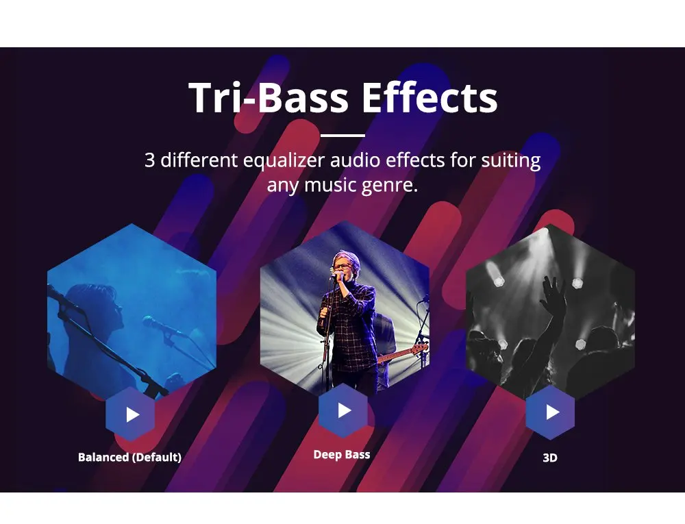 Слушайте музыку в 3 различных звуковых режимах эквалайзера, которые могут подойти к любому музыкальному жанру.
