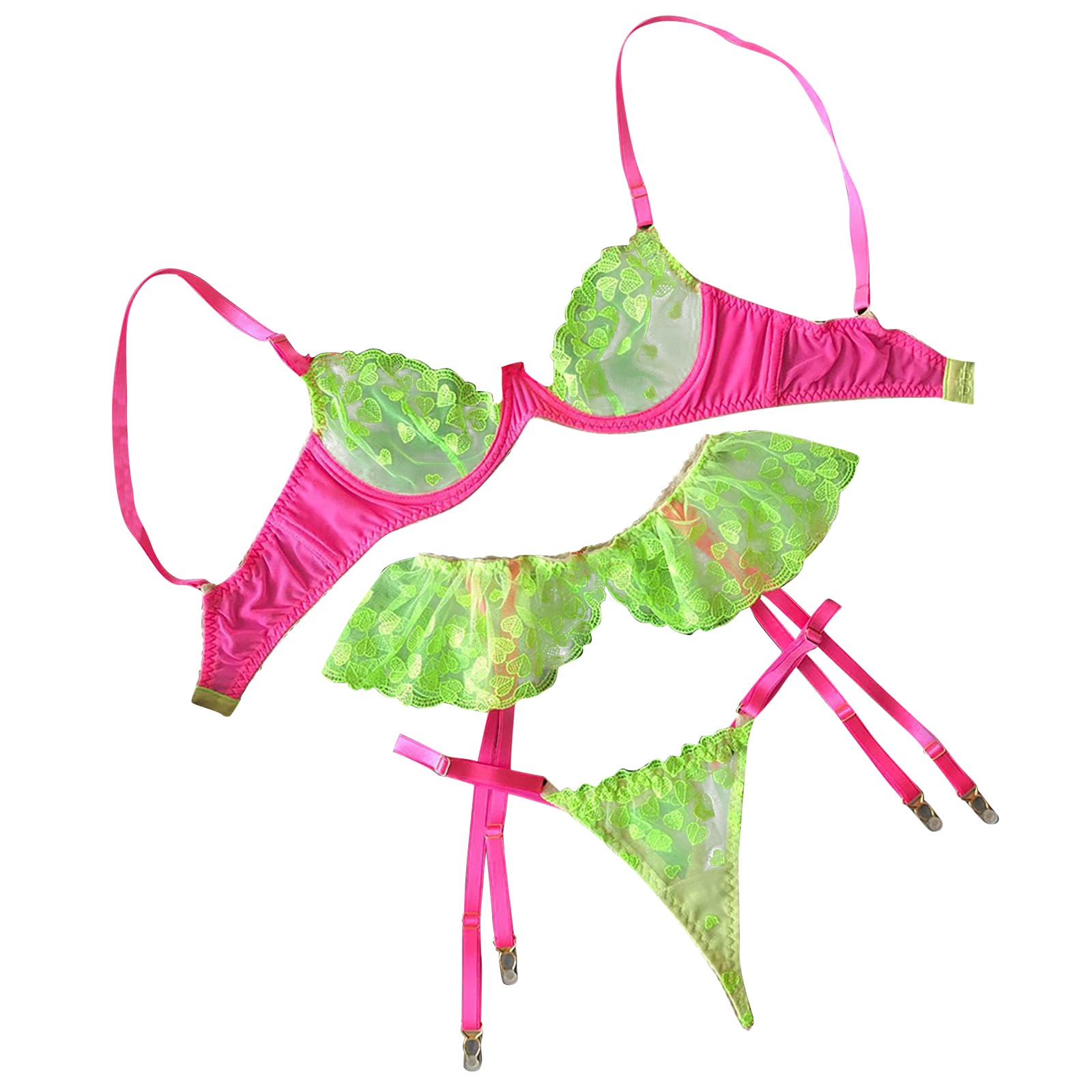 Женский сексуальный сетчатый прозрачный флуоресцентный кружевной вышитый пояс-подвязка Комплект из трех предметов