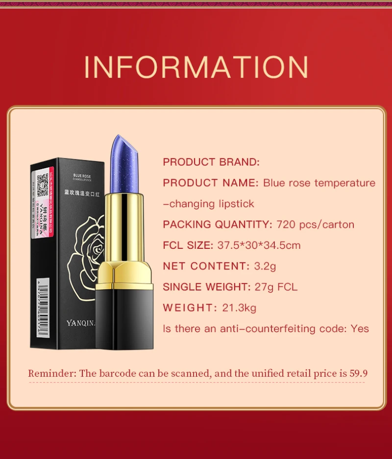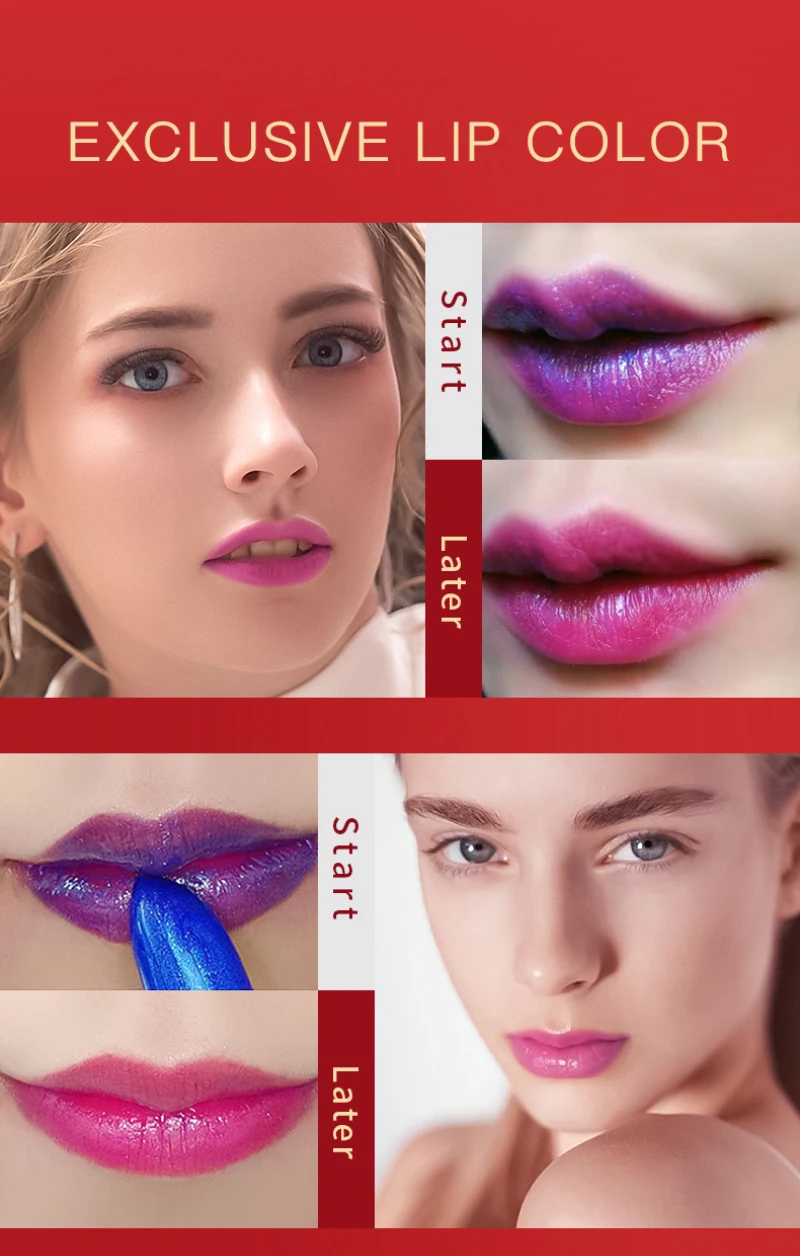 The color of the lipstick changes with the temperature and pH of the lips.