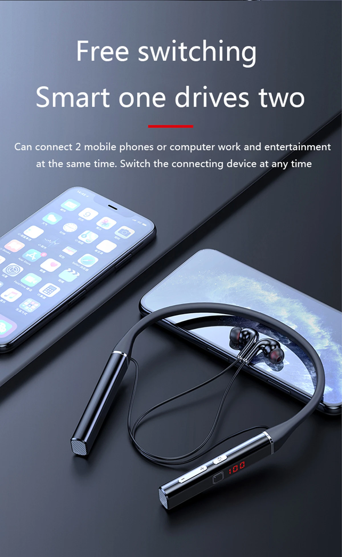 GAINBANG 720 беспроводные Bluetooth наушники, TF карты, стерео наушники в ухо, шейные наушники, 100 часов, время использования, светодиодный дисплей, гарнитура