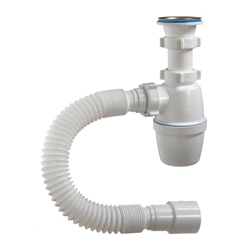 Предназначен для использования в раковинах, мойках.Высота гидрозатвора 60мм, что соответствует гигиеническим нормам. Сливное отверстие из корпуса сифона имеет отверстие D-40мм и снабжено механизмом цангового зажима с использованием конической прокладки. Сифон комплектуется гофрированной трубкой длиной 650мм, с универсальным выпуском 40/50мм,