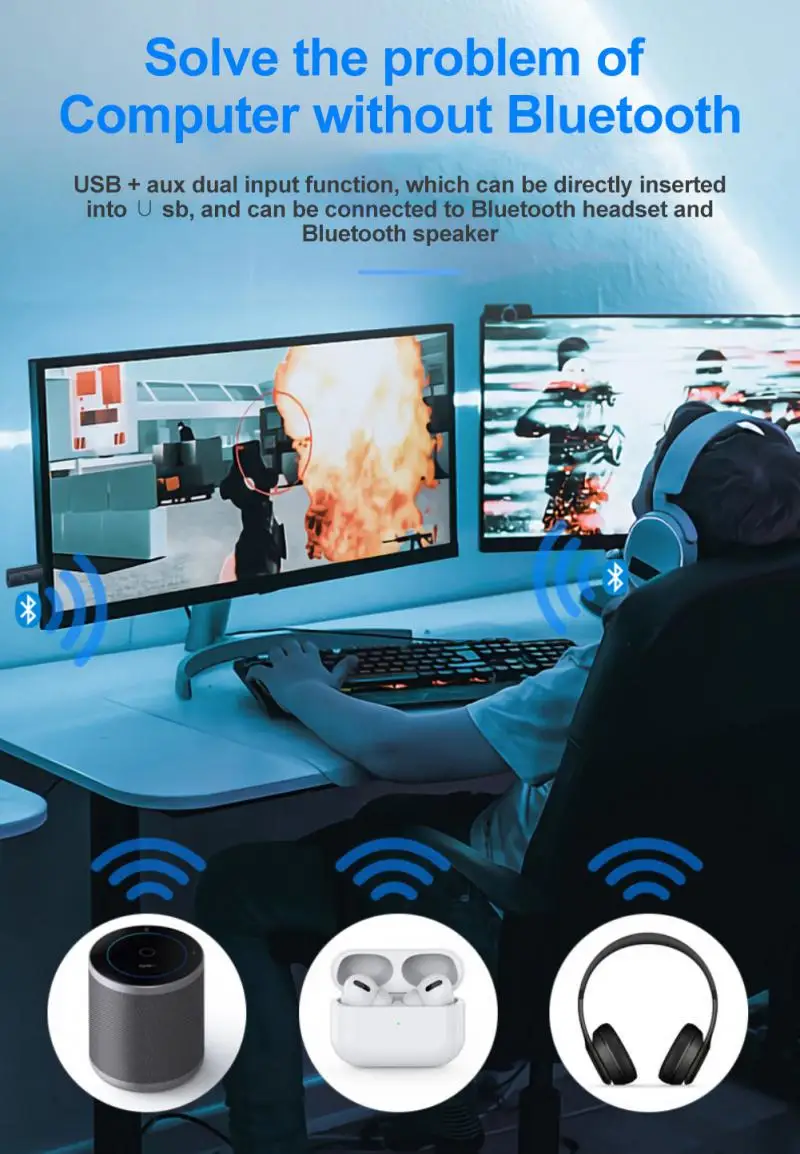 Это может быть использовано для помощи продуктам без bluetooth-устройств, сопряженных с bluetooth-устройствами, такими как настольные компьютеры, ноутбуки, телевизоры и т. д. с bluetooth-наушниками, bluetooth-динамиками, геймпадами Bluetooth и т. д.