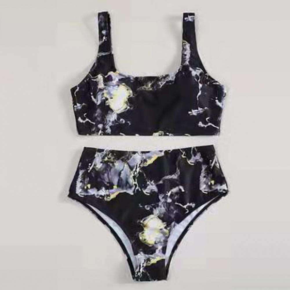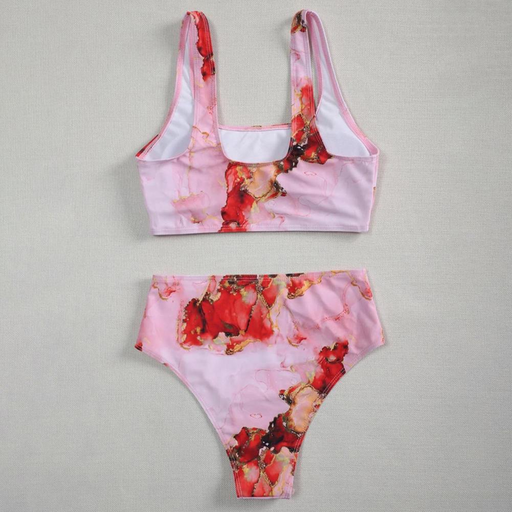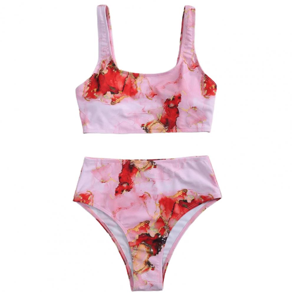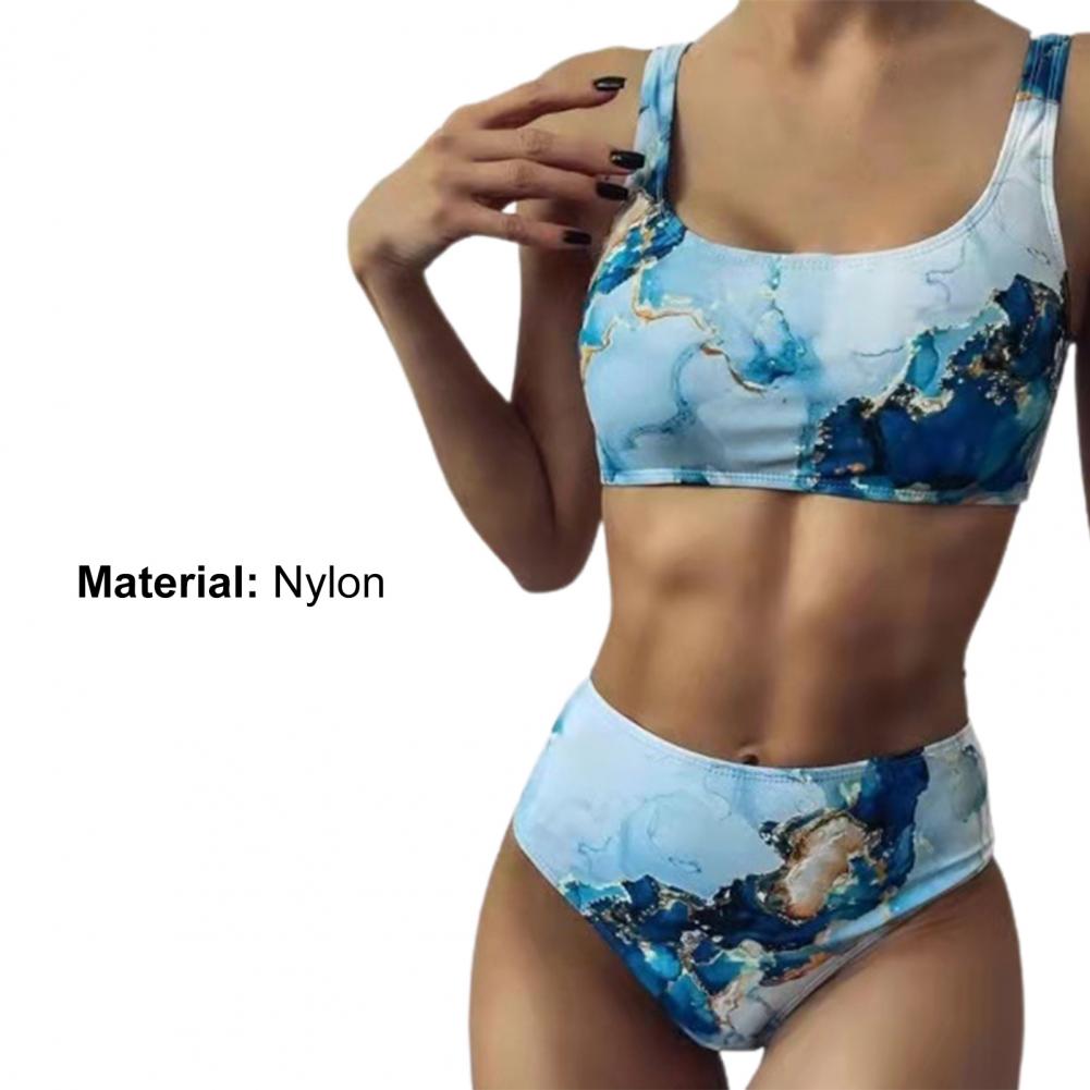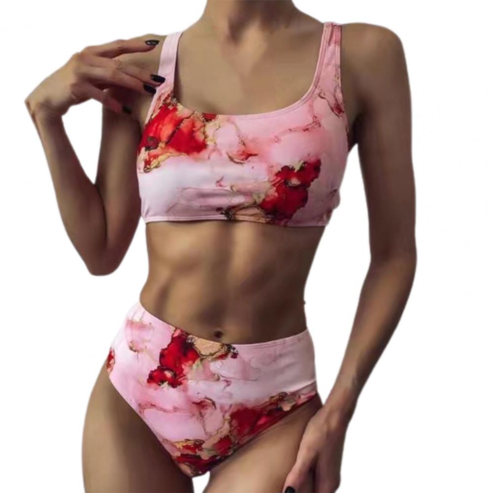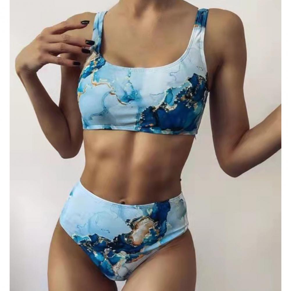 Бандо, u-образный вырез, бикини для девочек, комплект из 2 предметов, бюстгальтер с мраморным принтом, высокая талия, трусики от купальника для активного отдыха