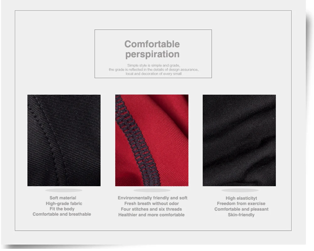 1. Дышащая спортивная ткань, четыре иглы и шесть линий, высокая эластичность и герметичность