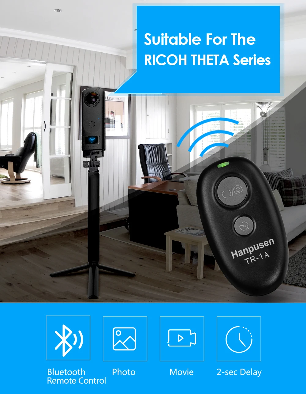 HANPUSEN TR-1A Wireless Remote Control Shutter Release for the RICOH THETA series(THETA SC2、Z1、V ).