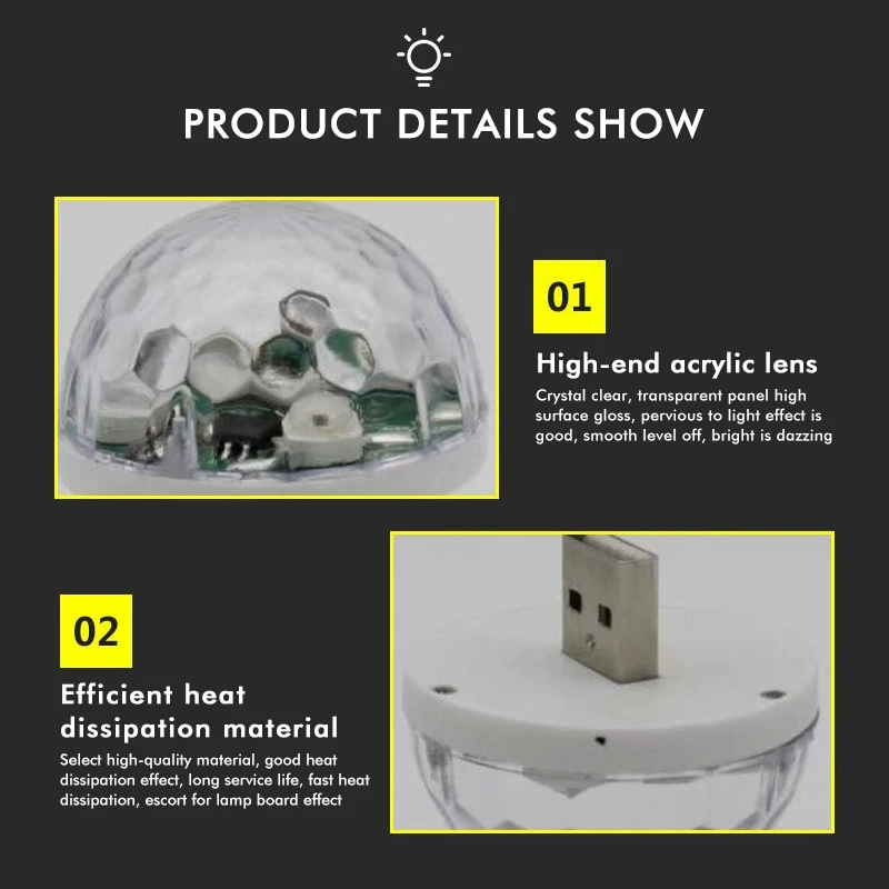 Подходит для украшения автомобиля, дискотеки, бальных танцев, КТВ, бара, сцены, клуба, вечерние, оборудования с интерфейсом USB и т. д.