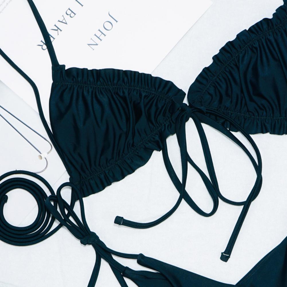 2 шт./компл. комплект бикини сплошной цвет плиссированные все матч мягкий летний купальный костюм для плавания