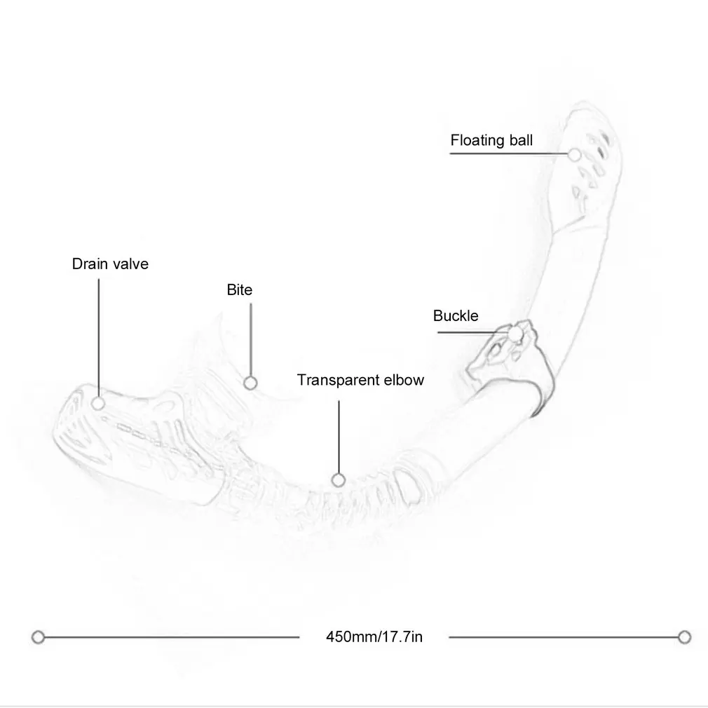 4. Дыхательная трубка имеет гибкую систему остановки воды, чтобы полностью остановить воду. Шарик в верхней части трубки автоматически уплотняет воздушный клапан, предотвращая попадание соленой воды в рот и увеличивая время подводного плавания.