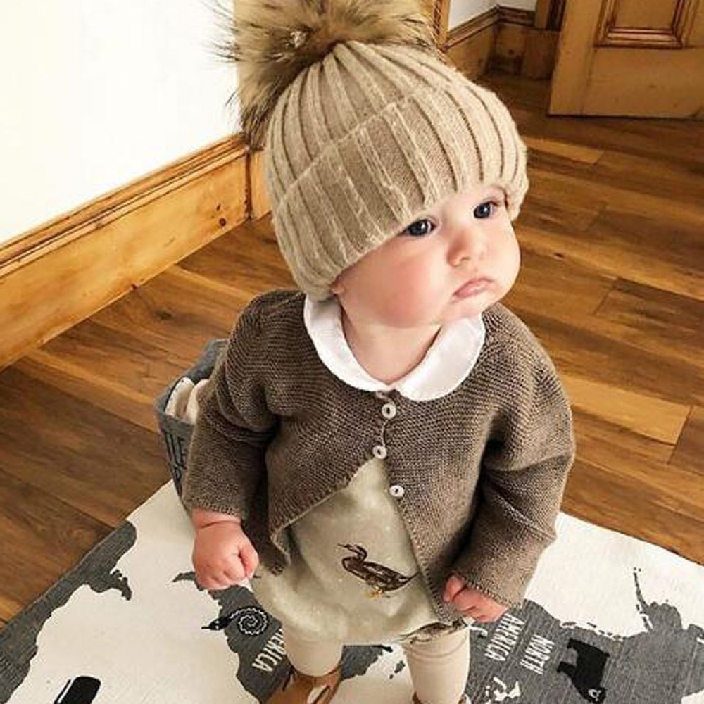 Newborn Cute Winter Kids Baby Hats Knitted Wool Hemming Hat