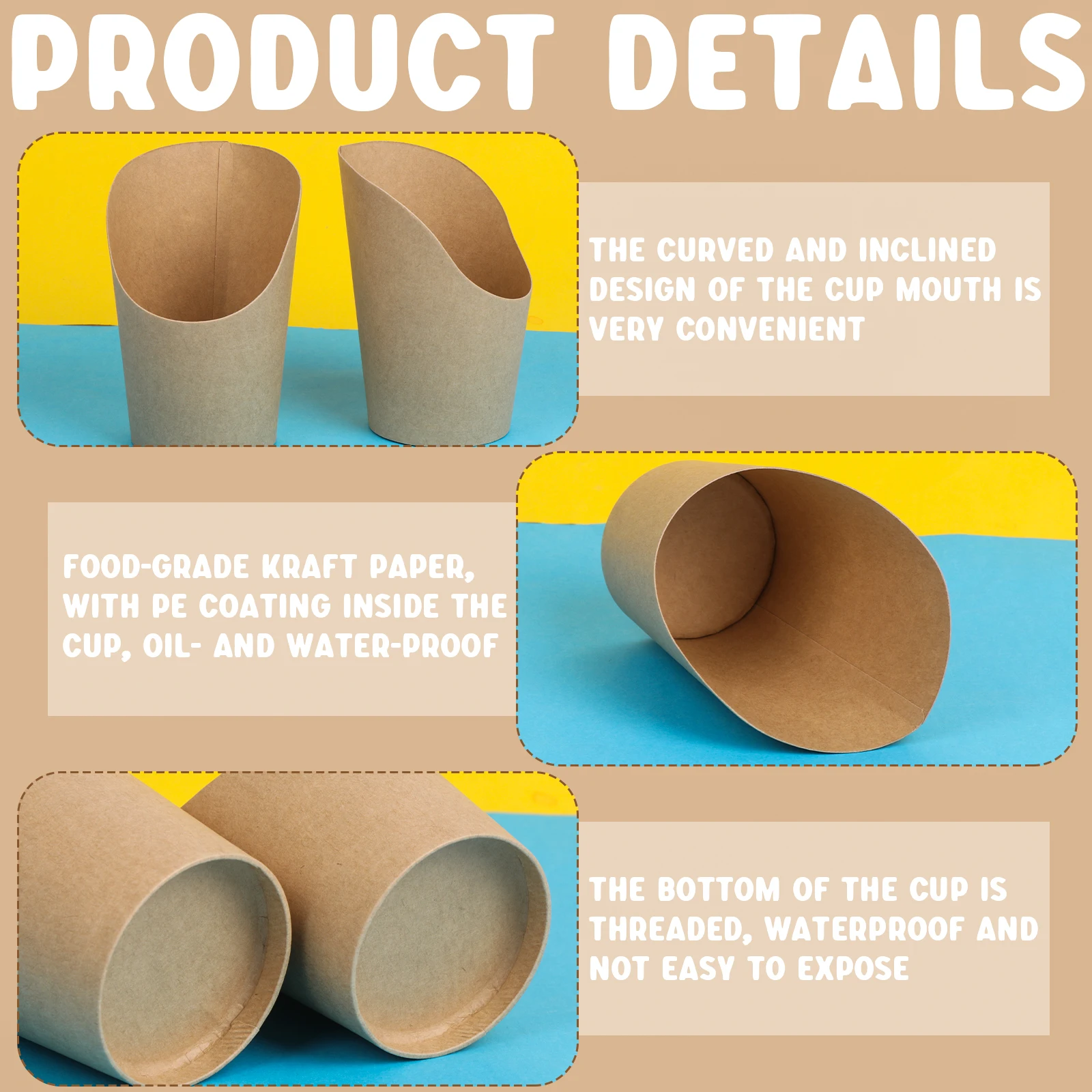 🍦【 Широкое использование 】коричневый одноразовый держатель для чашек подходит для аппетитной еды или десертов, таких как замороженные десерты, замороженный йогурт, овсянка, вафли, картофельные чипсы, йогурт, торты, пироги, вегетарианские мини-печенье, Пончики И т. д.
