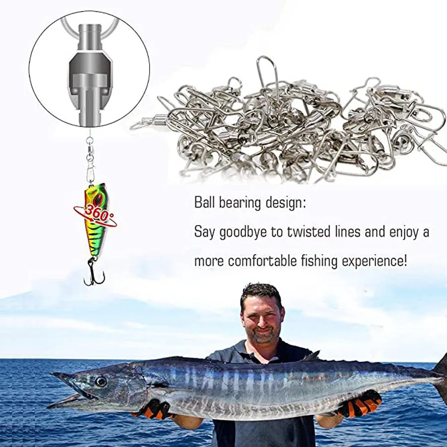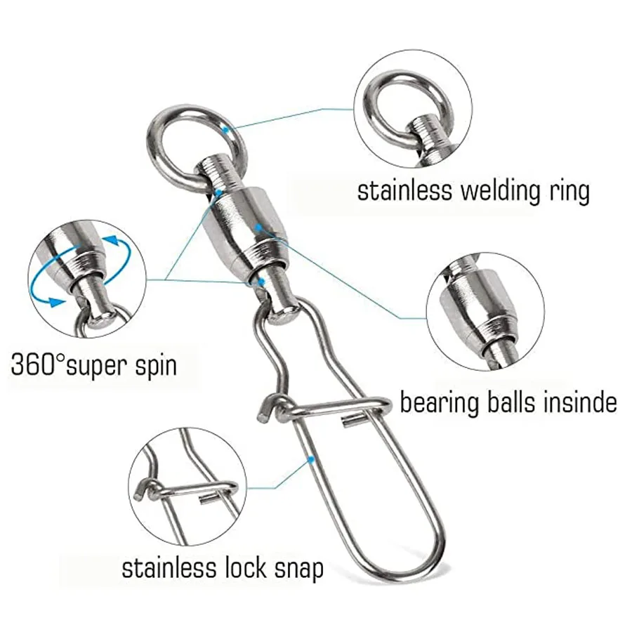 3. Более быстрое вращение: 6 шариков из нержавеющей стали, перегруженных внутри нержавеющей ствола swivelsl. Шаровой подшипник лески Свободно вращается без закручивания лески.