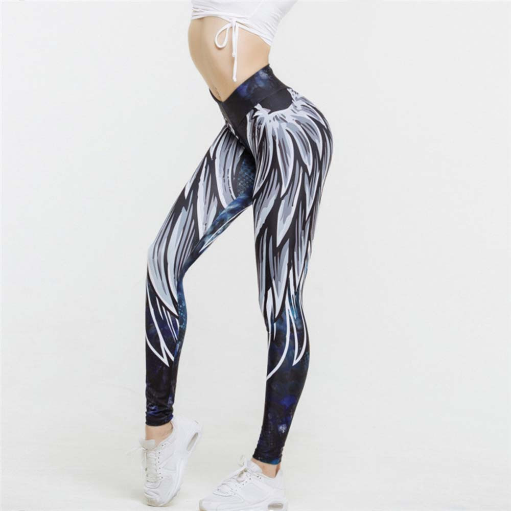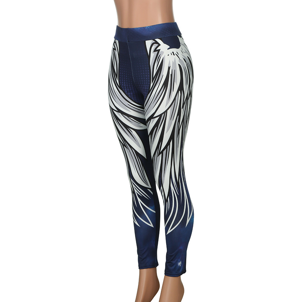 Womens Wing Printed Yoga Skinny Workout Leggings Fitness Sports Cropped Pants