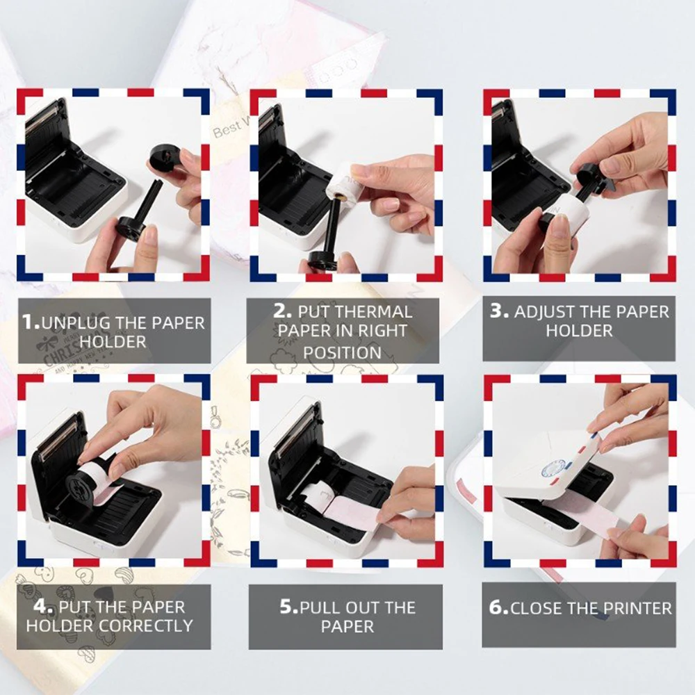 2. Высокое разрешение ----- 300 точек/дюйм HD чернильный Мини карманный принтер приносит вам совершенно новую печать изображения и текст опыта. 5V2A делает качество печати лучше, чем 5V1A. Вы можете наслаждаться фотографированием или Редактированием текста на мобильных телефонах, как вам нравится, и использовать его, чтобы сделать журнал или DIY ремесло.