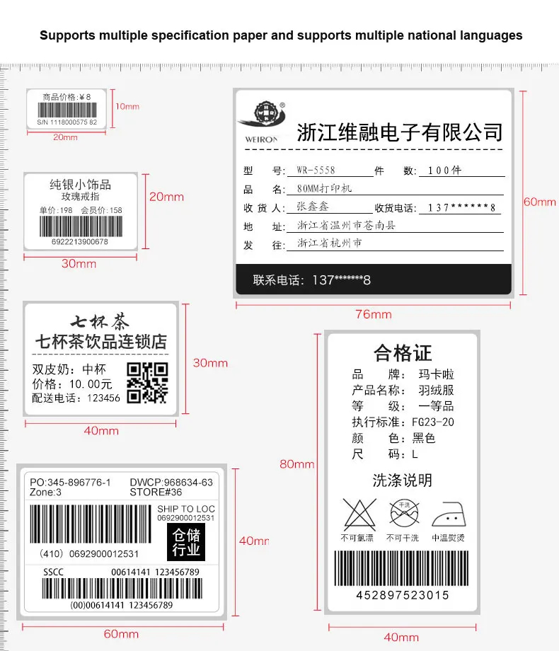 2. Этот принтер может печатать этикетку и квитанцию. Ширина печати этикеток составляет 20- 80 мм, а квитанция-80 мм. Он не поддерживает автоматическую резку.