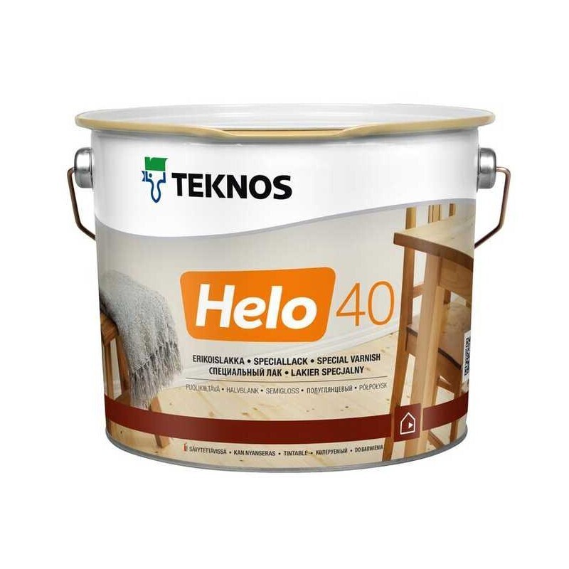 Teknos Helo 40 (Текнос Хело 40) является полуглянцевым, уретано-алкидным лаком, обладающим хорошими стойкими свойствами. Лак подходит для лакировки различных деревянных поверхностей внутри и снаружи, когда к лаковому покрытию предъявляют высокие требования.Teknos Helo 40 имеет отличную стойкость к погоде и воде. Пленка лака долго сохраняет свой блеск, она не шелушится и не трескается. Он защищает дерево от посерения и растрескивания.Поверхность, покрытая лаком HELO 40, становится твердой и одновременно эластичной, поэтому пленка лака стойкая к износу и ударам. Моющие средства, жир и масло не повреждают пленку лака.Объектами применения являются: паркетные и дощатые полы, и прочие деревянные поверхности, при желании получить устойчивую лакировку.