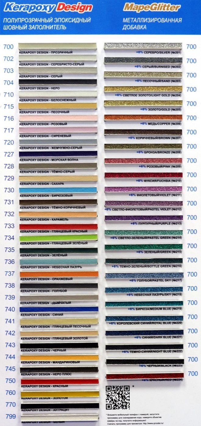 Состав MAPEI KERAPOXY DESIGN представляет собой двухкомпонентный состав, состоящий из эпоксидной смолы, наполнителя в виде мелкодисперсного кварцевого песка и отвердителя. При смешивании этих трех компонентов в правильной пропорции (в упаковке все три компонента отмерены в необходимой пропорции), состав превращается в прочный камень с высокой адгезией к любым основаниям.Эпоксидный заполнитель швов MAPEI KERAPOXY DESIGN предназначен для заполнения швов шириной от 1 до 7 мм. Также состав может быть использован в качестве клея для плитки по любым обычным основаниям, используемым в строительстве, в том числе к дереву и стеклу.В отличие от MAPEI KERAPOXY, Керапокси Дизайн имеет несколько иной состав эпоксидной смолы, что дает более текучую консистенцию, и, как следствие, позволяет выполнять работы по заполнению более тонких швов - от 1 мм. Также непосредственно смола имеет полупрозрачную базу, что позволяет расширить цветовую гамму до невероятного спектра: именно этот состав готов похвастаться ассортиментом в 46 цветов, который может быть расширен введением в состав металлизированных блесток MAPEI MAPEGLITTER для достижения абсолютно уникальных цветов.KERAPOXY DESIGN за счет иного рецепта эпоксидной смолы и отвердителя, получает несколько большую прочность, нежели обычный KERAPOXY (который чаще выбирается для промышленных целей), но и цена на него выше. Поэтому чаще всего он используется для оформления поверхностей с высоким эстетическим значением: частные квартиры, кухни, бассейны, частные дома, выставочные залы и торговые площади.Особенно важно отметить эффектность MAPEI KERAPOXY DESIGN при работе со стеклянной мозаикой. Его полупрозрачная структура повторяет полупрозрачность стеклянной мозаики, тем самым сохраняя эффект стекла. Кроме 42 цветных исполнений, доступен и прозрачно бесцветный цвет, который уместен на узких швах мозаики с рисунком: прозрачный бесцветный шов не прерывает визуальный ряд орнамента / рисунка и воспринимает на себя цветовое отражение от контактирующего чипа.Этот состав может применяться и как заполнитель швов, и как клей для плитки, что особенно актуально для стеклянной мозаики - цветной нижний слой клея позволит усилить эффект цвета + добавит особой прочности. Кроме того, цементные клея для плитки не позволяют работать по сложным основаниям: по дереву или стеклу; эпоксидный реактивный клей KERAPOXY DESIGN позволит надежно приклеить плитку к деревянным основаниям или стеклянным поверхностям.