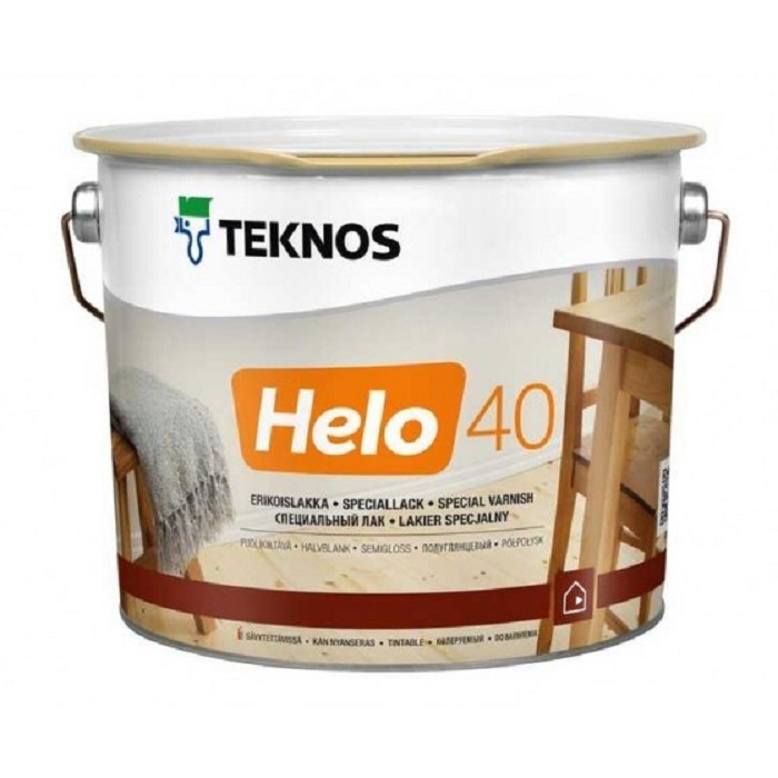 Teknos Helo 40 (Текнос Хело 40) является полуглянцевым, уретано-алкидным лаком, обладающим хорошими стойкими свойствами. Лак подходит для лакировки различных деревянных поверхностей внутри и снаружи, когда к лаковому покрытию предъявляют высокие требования.Teknos Helo 40 имеет отличную стойкость к погоде и воде. Пленка лака долго сохраняет свой блеск, она не шелушится и не трескается. Он защищает дерево от посерения и растрескивания.Поверхность, покрытая лаком HELO 40, становится твердой и одновременно эластичной, поэтому пленка лака стойкая к износу и ударам. Моющие средства, жир и масло не повреждают пленку лака.Объектами применения являются: паркетные и дощатые полы, и прочие деревянные поверхности, при желании получить устойчивую лакировку.