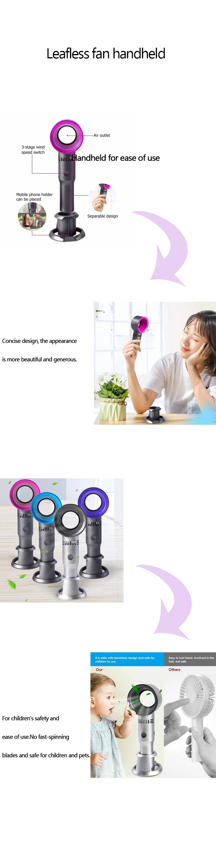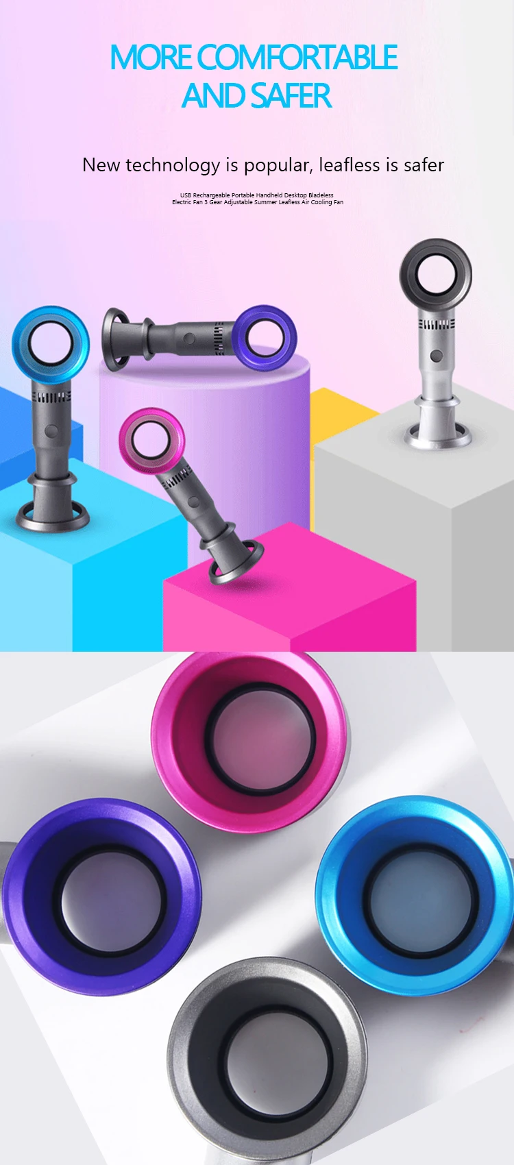 Это мини-вентилятор без пузырьков, изготовленный из АБС-пластика, легко чистится, долговечен в использовании и обладает 3 скоростями для удовлетворения ваших потребностей.