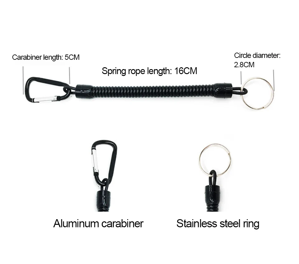 4. Алюминиевый карабин на одном конце и железное кольцо на другом конце может прикрепить ваше снаряжение к поясу или лодке или каяку