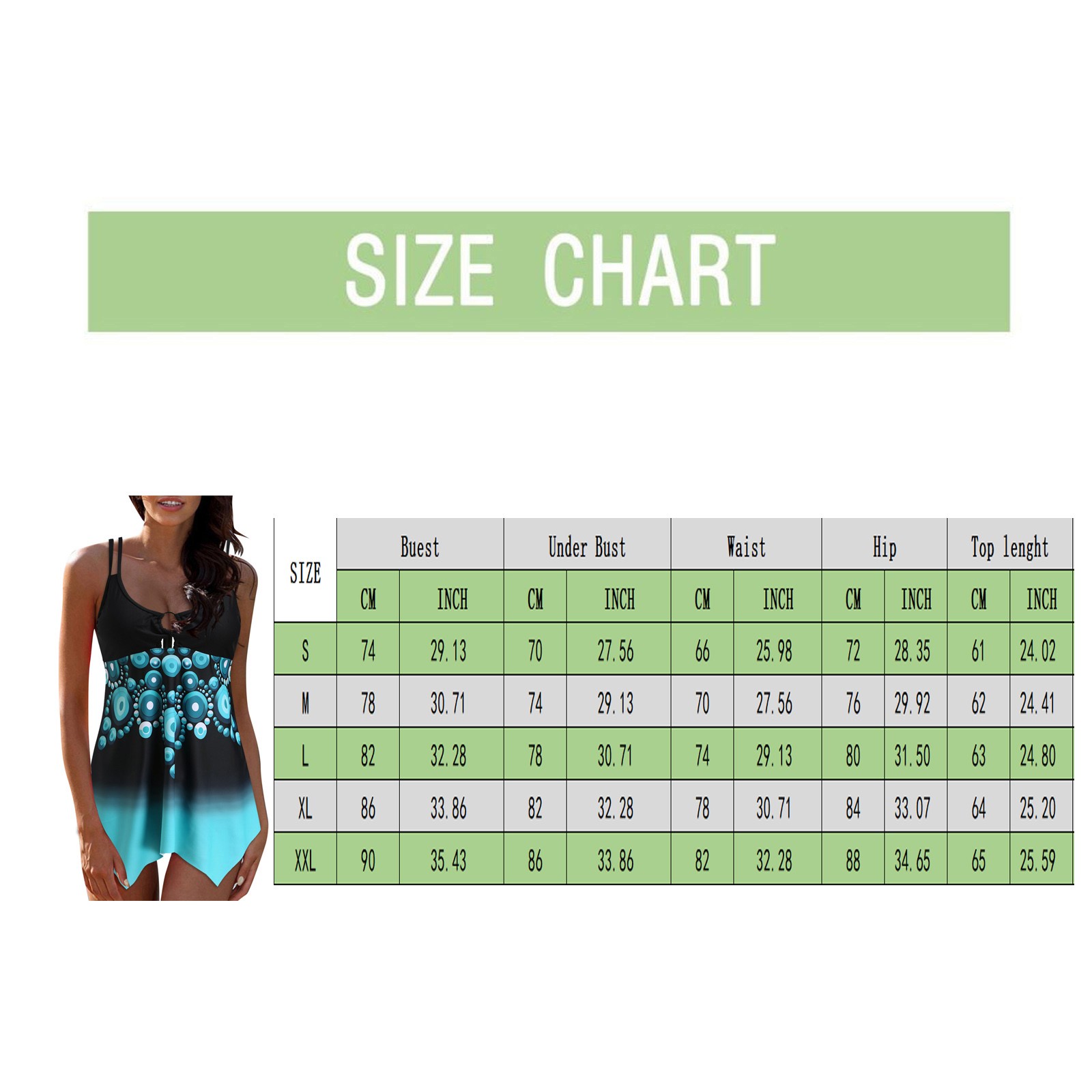 Размеры США Великобритания ЕС Бюст Под грудью Талия Бедра Длина S 4 8 32 74 см/29,13'' 70 см/27,56'' 66 см/25,98'' 72 см/28,35'' 61 см/24,02'' М 6 10 34 78 см/30,71'' 74 см/29,13'' 70 см/27,56'' 76 см/29,92'' 62 см/24,41'' L 8 12 36 82 см/32,28'' 78 см/30,71'' 74 см/29,13'' 80 см/31,50'' 63 см/24,80'' XL 10 14 38 86 см/33,86'' 82 см/32,28'' 78 см/30,71'' 84 см/33,07'' 64 см/25,20'' XXL 12 16 40 90 см/35,43'' 86 см/33,86'' 82 см/32,28'' 88 см/34,65'' 65 см/25,59''